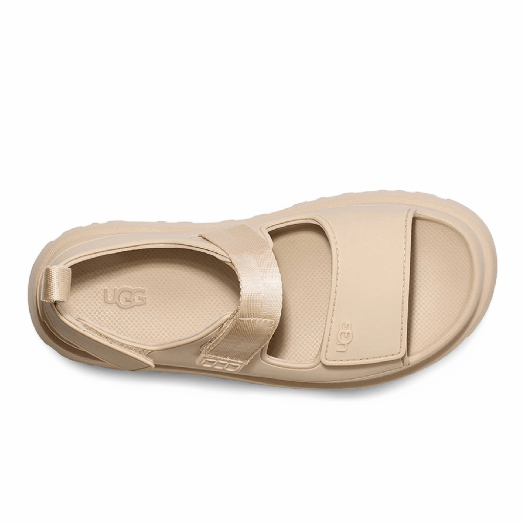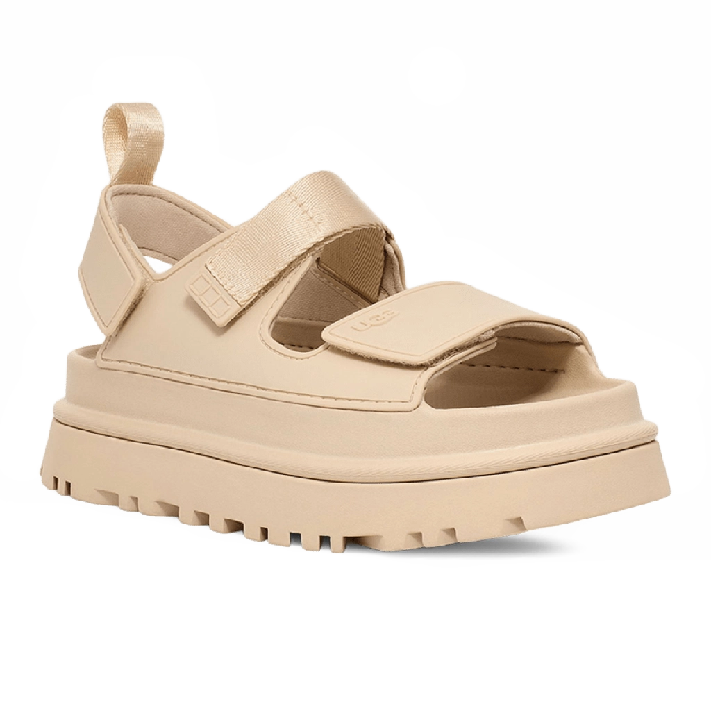 תיהנו מנוחות קלה ומרעננת עם סנדלי UGG GoldenGlow בצבע Sea Salt. עם עליון מזמש רך וריפוד צמר כבשים מפנק, הסנדלים מספקים תמיכה מרופדת לאורך כל היום. סוליית EVA קלה מקני סוכר וסוליה חיצונית עמידה מבטיחות יציבות בבית ובשימוש קל בחוץ. רצועות מתכווננות מאפשרות התאמה אישית ובטוחה, בעוד הצבע העדין Sea Salt מוסיף מגע רענן ורב-שימושי לכל תלבושת. מושלם לשילוב סגנון יומיומי ונוחות לאורך כל היום.