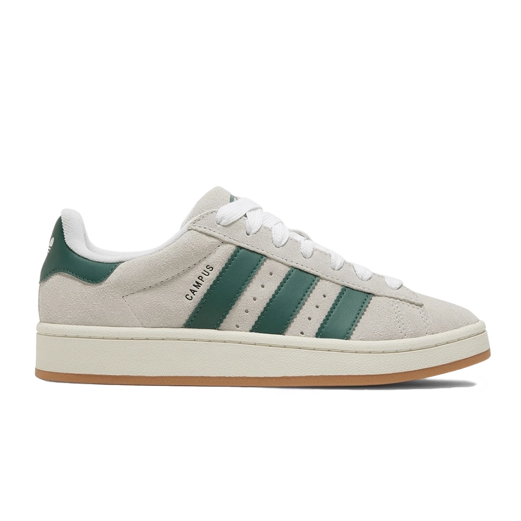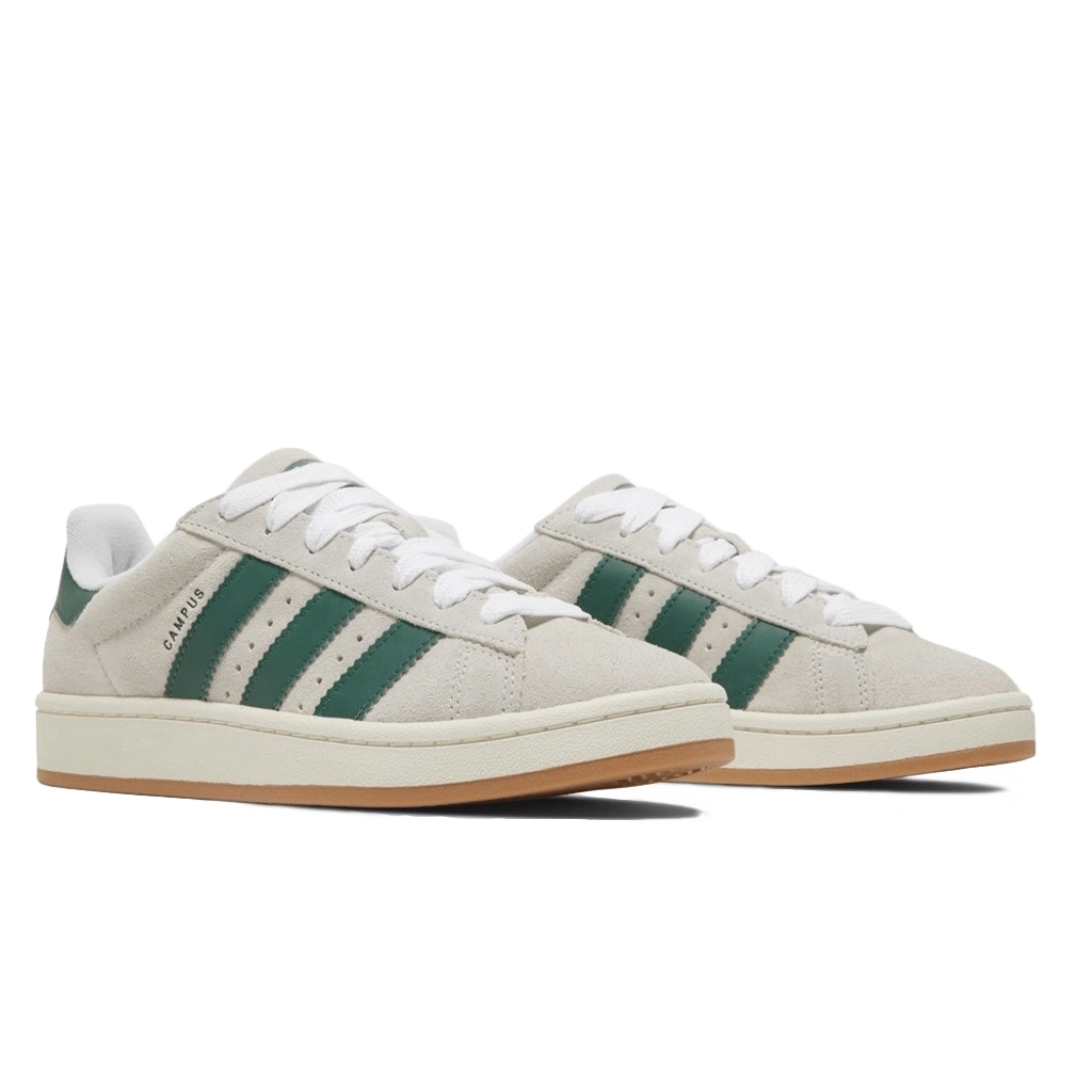 האדידס Campus 00s בצבע Crystal White ו-Dark Green מציגות מראה קלאסי ורענן עם טאץ’ מודרני. גפה עליונה מזמש איכותי בצבע לבן מודגשת בשלושת הפסים ובחלק האחורי בגוון ירוק כהה, המשלבת אלגנטיות רטרו עם סגנון סטריטוור עכשווי. סוליה עבה, צווארון מרופד וסוליית גומי עמידה מעניקים נוחות ותמיכה לאורך כל היום, לנעל שמתאימה לשימוש יומיומי ולמראה בולט.
