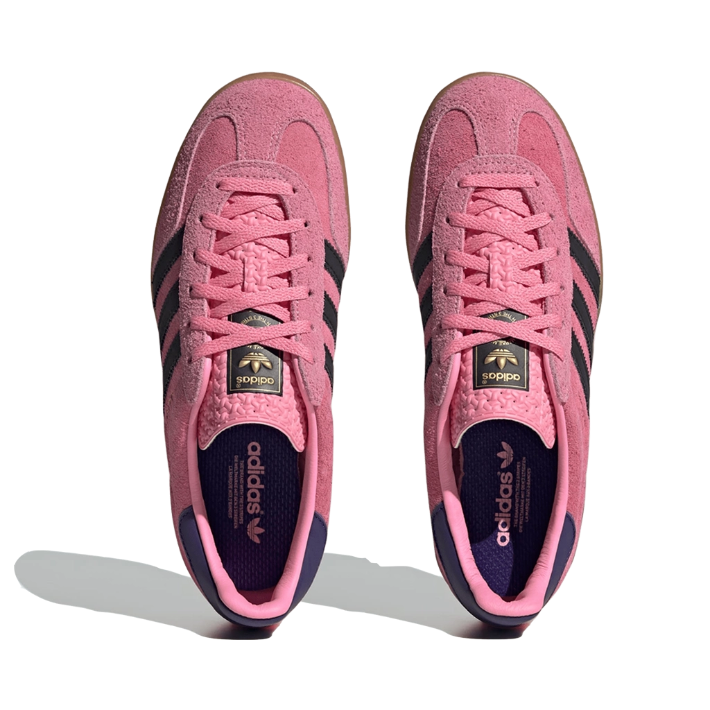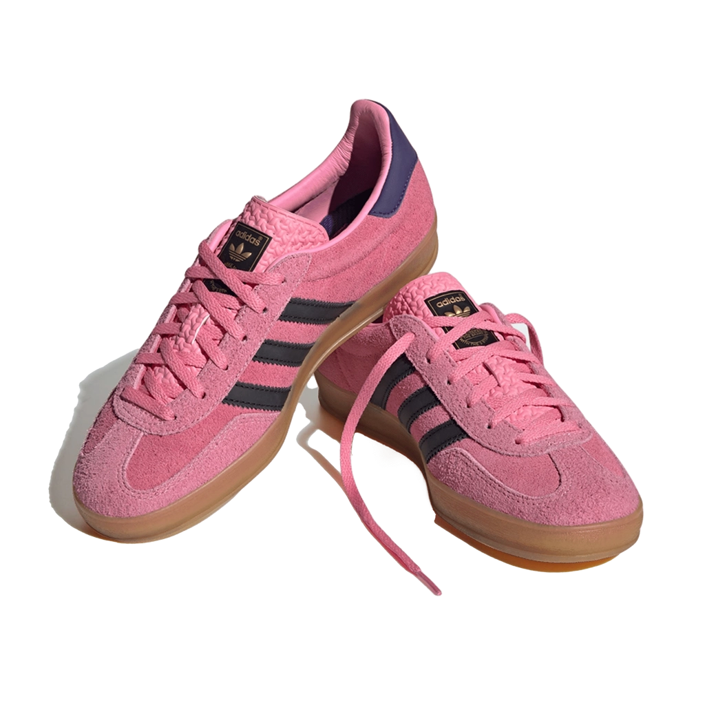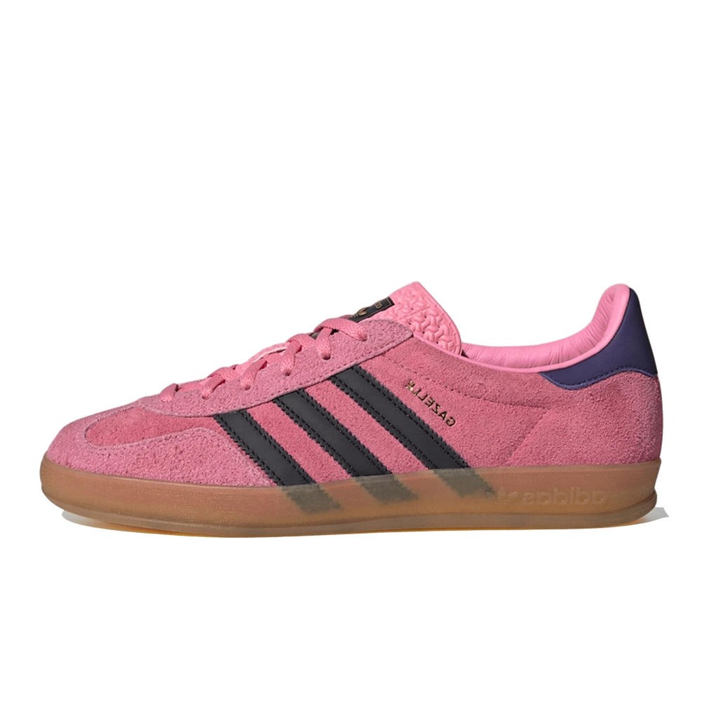 נעלי adidas Gazelle Indoor Bliss Pink משלבות עיצוב קלאסי לפעילות פנימית עם פלטת צבעים אופנתית. עליונית בצבע Bliss Pink עם פרטים ב-Core Black וב-Collegiate Purple מעניקה מראה ספורטיבי ומעודן. הנעל בנויה עם שכבות זמש עמידות, סוליית גומי נוחה ופרטי Gazelle אייקוניים, מושלמת לפעילות פנימית או לשימוש יומיומי תוך שמירה על סגנון אדידס קלאסי.