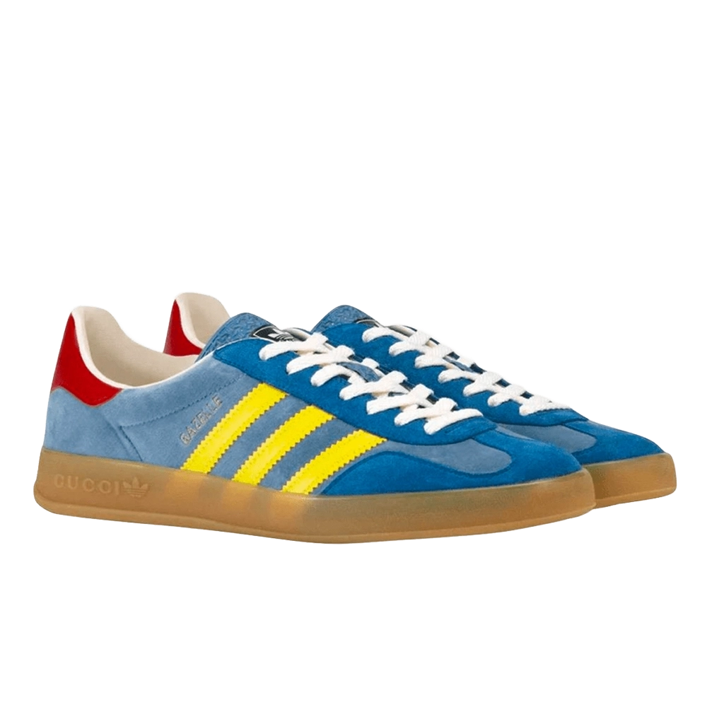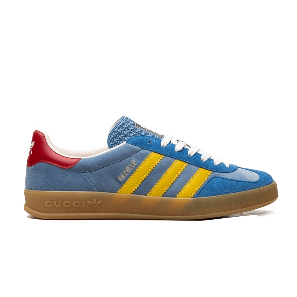 Gucci x Adidas Gazelle בזמש כחול בהיר מציגים עיצוב רענן ומעודכן לסילואטה קלאסית המיועדת לכולם. החלק העליון מזמש בגוון תכלת רך משלב את המלאכה היוקרתית של גוצ’י עם המורשת האייקונית של Gazelle מבית אדידס. הפרטים הממותגים המשותפים, שלושת הפסים המזוהים וסוליית גומי וינטג’ משלימים את המראה, ומציעים שילוב מושלם של קסם רטרו ותחכום מודרני. נעלי ספורט נוחות ורב-שימושיות, אידיאליות למי שמעריך סגנון על-זמני עם ניחוח מעוצב.