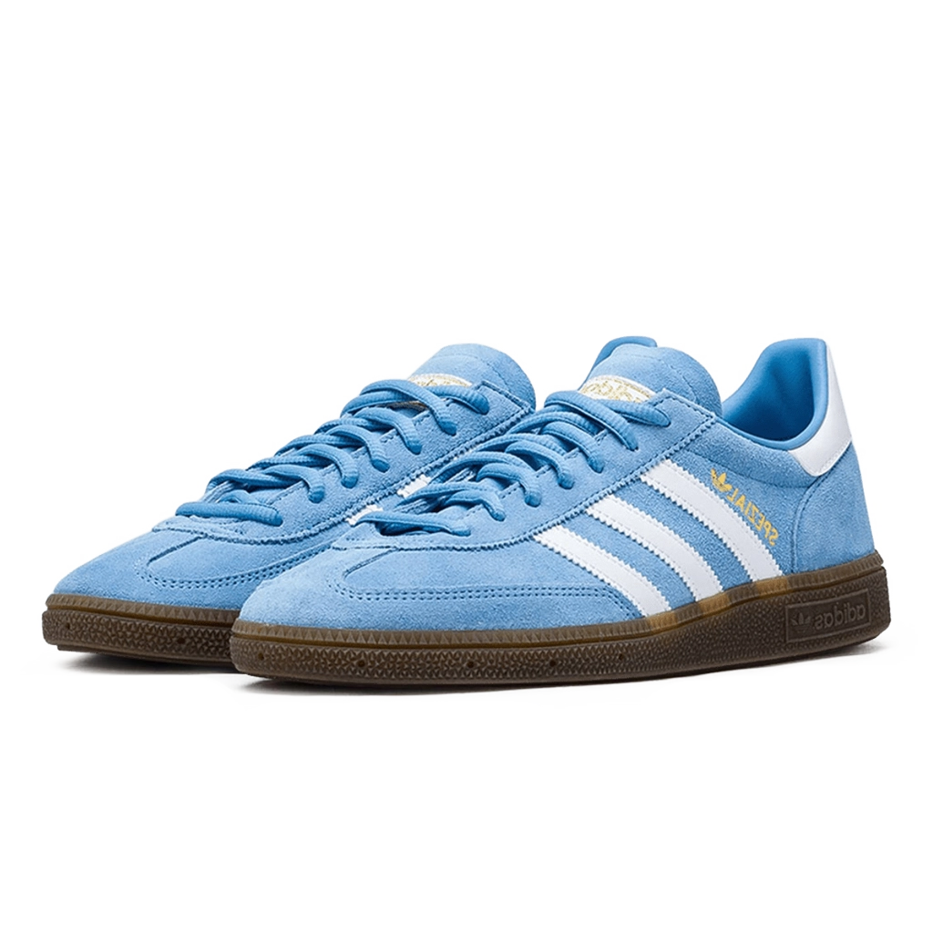 האדידס Handball Spezial בצבע Light Blue, Cloud White ו-Gum מעניק פרשנות רעננה לסילואט קלאסי. במקור נועד למשחקי כדוריד באולם, והיום הוא נחשב לנעל לייף-סטייל פופולרית. העליונית מזמש איכותי בצבע תכלת, עם פרטי לבן נקי וסוליית גומי עמידה יוצרים שילוב מושלם בין מורשת ספורט רטרו לסטייל מודרני, ומאפשרים שימוש יומיומי ורב-תכליתי.