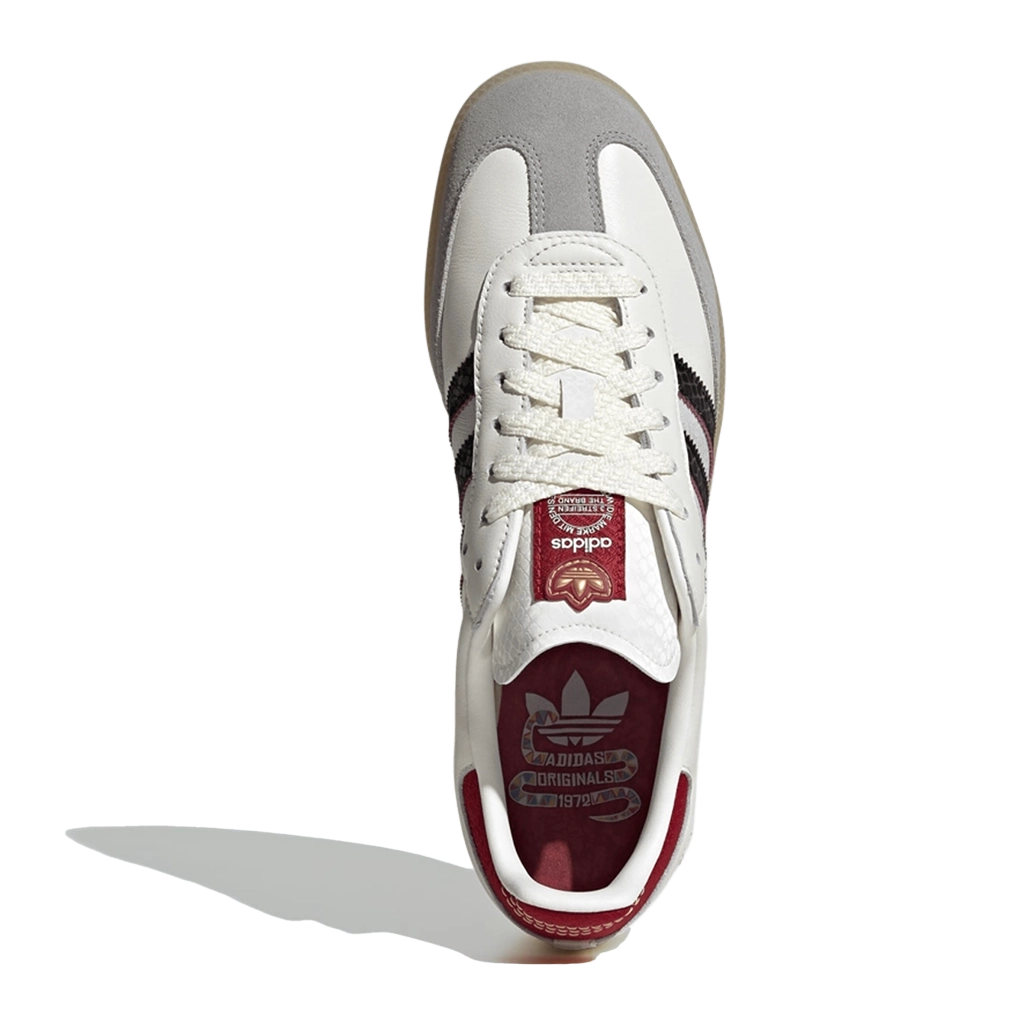 אדידס סאמבה OG בצבע לבן ענן, שחור ומרון אקטיבי משלב סגנון קלאסי עם נגיעות בולטות לנעל יוניסקס רב-תכליתית. הנעל, שעוצבה במקור לכדורגל באולמות, מציגה עליון עור חלק בצבע לבן בהיר המשולב עם שלושת הפסים השחורים ופרטים עמוקים בצבע מרון בעקב ובשפה. סוליית גומי עמידה מספקת אחיזה אותנטית ומראה וינטג’. מושלמת להוספת טאץ’ ספורטיבי ואלגנטי למראה יום-יומי או רחוב, סאמבה OG נותרה אייקון נצחי לנוחות ולסטייל לאורך כל היום.