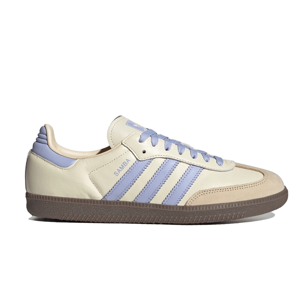 סטייל אייקוני בצבעים מחודשים – אדידס סאמבה OG בגרסה יוניסקס בצבע לבן קרם עם נגיעות סגול עדין וחום חול מביא רענון עכשווי לדגם הקלאסי. עם עליון עור חלק, שכבות זמש רכות וסמל שלושת הפסים בגוון סגלגל, הדגם משלב בין מראה רטרו לבין עידון מודרני. הסוליה החומה והכיסוי הקלאסי בקצה הנעל משמרים את אופיו הספורטיבי של הדגם המקורי שנוצר למגרשי כדורגל באולמות. שילוב של נוחות, נוכחות ועיצוב נצחי — נעל שמתאימה לכל סגנון.