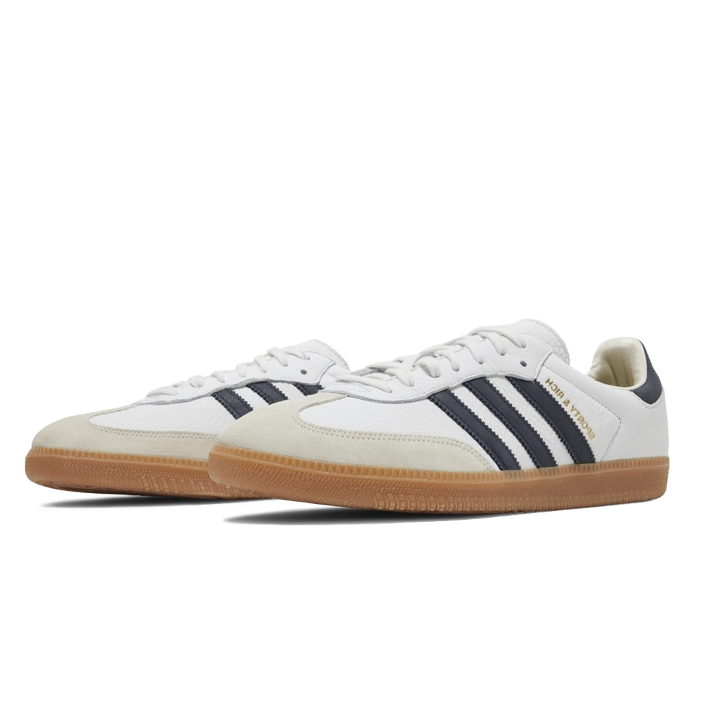 ספורטי & ריץ x Samba OG Cloud White משלבת את מורשת הסמבה הקלאסית עם סטייל מודרני. עליונית עור לבן חלק עם פרטי Legend Ink עמוקים וסוליית גומי עמידה יוצרת נעל עם עיצוב על-זמני, נוחות וגמישות ליום-יום. מושלם ללוק יומיומי או אופנת רחוב, בשיתוף פעולה שמוסיף טאץ’ ייחודי לקלאסיקה רטרו.