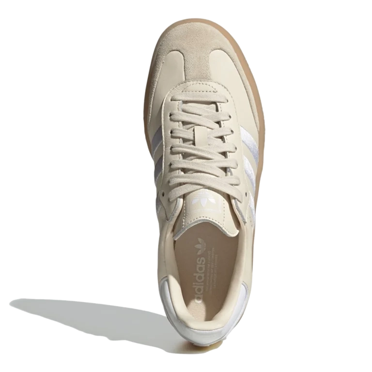 שדרגו את הסגנון היומיומי שלכם עם נעלי adidas Sambae בצבעים Wonder White, Cloud White ו-Silver Metallic – גרסה מודרנית לדגם הסמבה הקלאסי. הנעל, שנועדה במקור לכדורגל באולמות, מתאימה כיום גם לרחובות העיר בזכות עיצוב יוניסקס ייחודי. החלק העליון עשוי עור ונובוק חלקים, בשילוב שלושת הפסים הרקומים ודיטייל של תפר קדמי המעוצב בגימור יוקרתי. סוליית הגומי השקופה מעניקה מראה רטרו תוך שמירה על אחיזה עמידה. נקיות, מינימליסטיות ובעלות נוכחות – הנעליים האלה בנויות לבלוט, במגרש או בעיר.