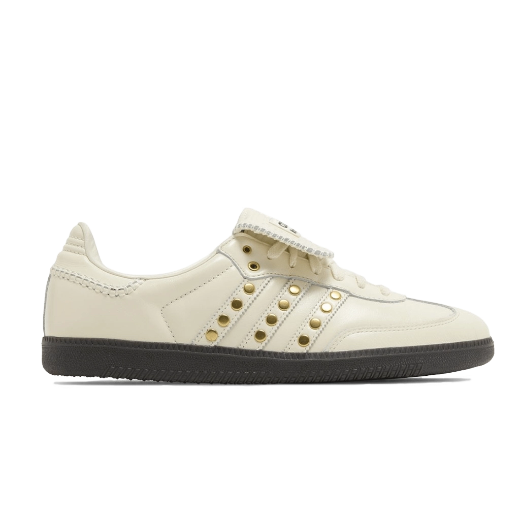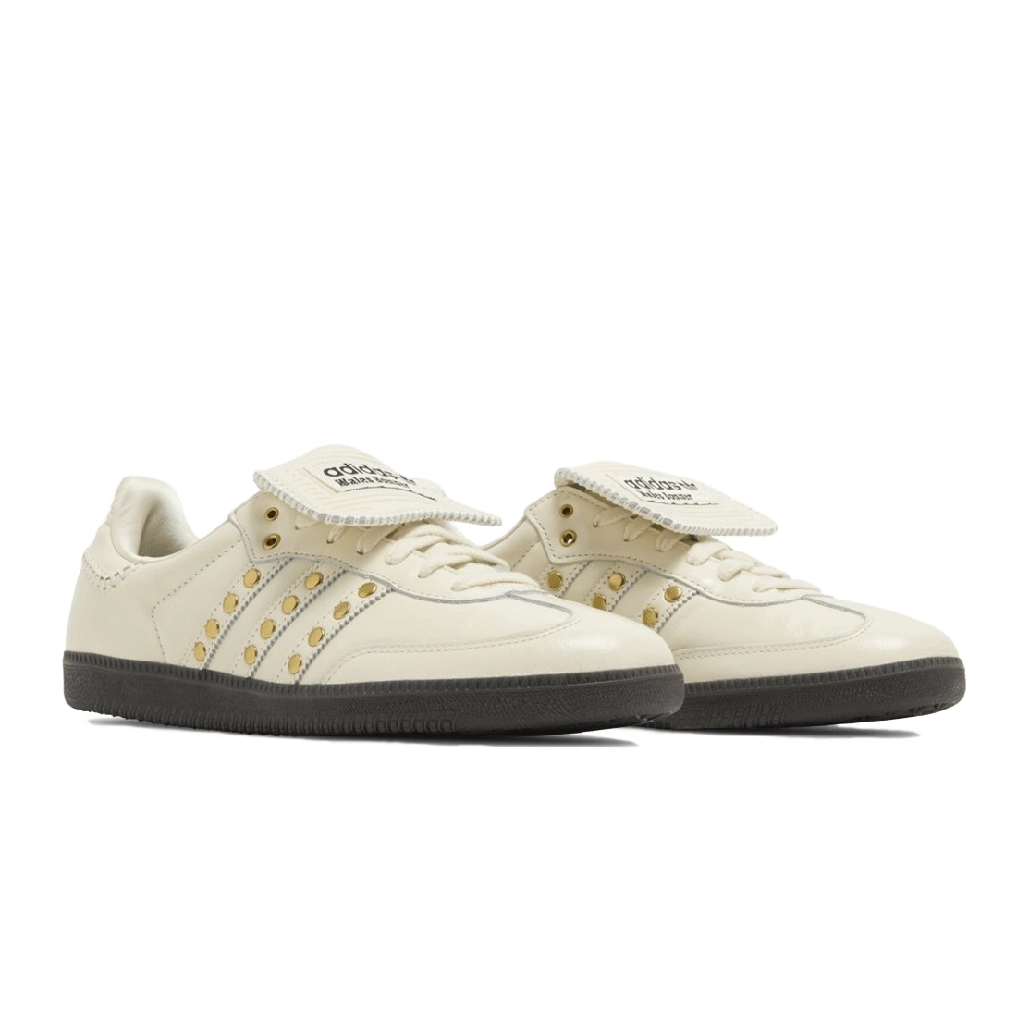 צעדו לתוך שילוב מושלם של מורשת וחדשנות עם נעלי אדידס x וויילס בונר סאמבה סטאדד פק בצבע שמנת. נעל יוניסקס זו מכבדת את סילואט הסאמבה האייקוני ומרימה אותו עם גווני שמנת יוקרתיים ודיטיילים של ניטים בולטים להופעה מרשימה. עשויה מעור וסוייד פרימיום, הנעל מציעה גם סגנון וגם עמידות. צבע השמנת מאפשר התאמה קלה לכל מלתחה. בין אם אתם יוצאים לדרך או מוסיפים נגיעה ייחודית לאוסף הנעליים שלכם, שיתוף הפעולה הזה מספק תחכום עם טוויסט אוונגרדי.