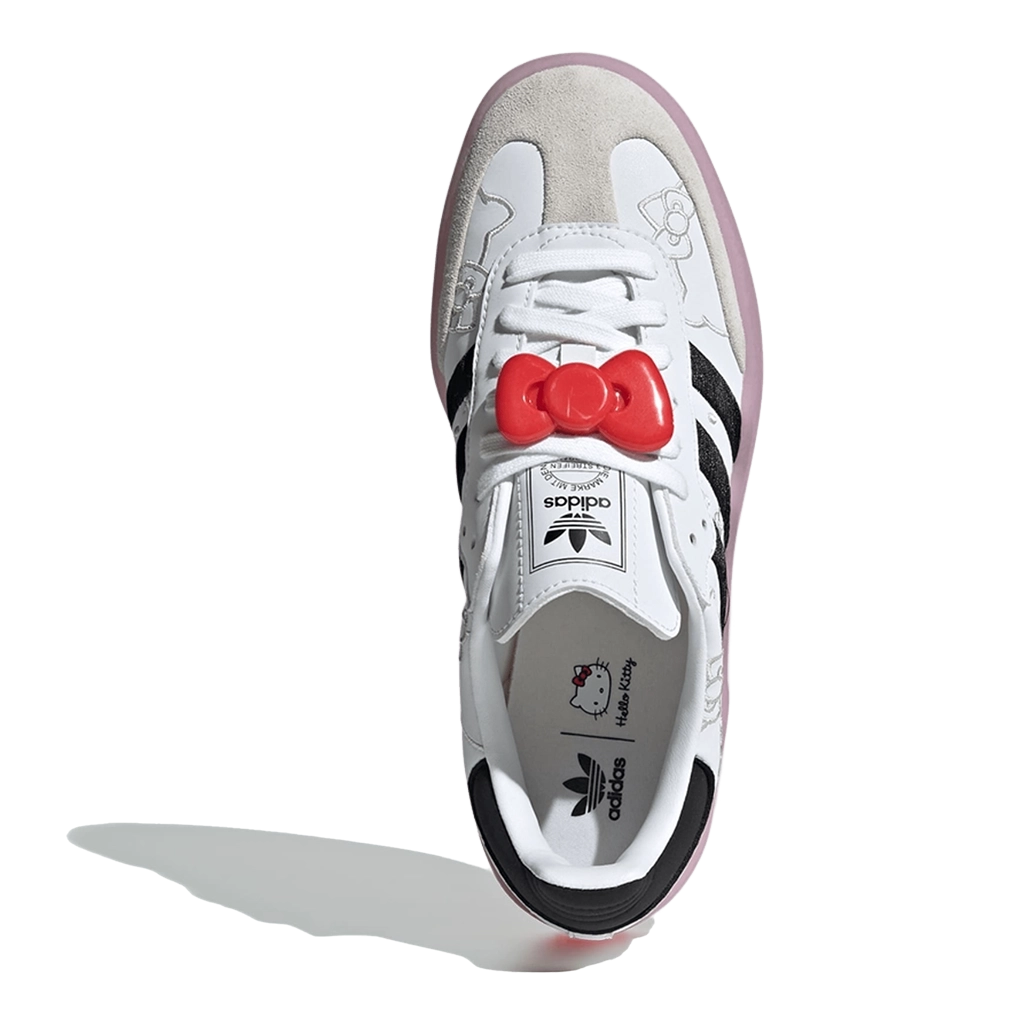 חמוד פוגש קלאסי בדגם adidas Sambae x Hello Kitty – שיתוף פעולה יוניסקס שמחבר בין סטייל רחוב אייקוני לבין קסם ילדותי. עם עליון עור בגוון לבן ענן, נגיעות ורוד שקוף וסוליה שחורה, הנעל מביאה את האופי השובבי של הלו קיטי לקדמת הבמה. הקשת האייקונית, הדפסים עדינים ואלמנטים עיצוביים של הדמות יוצרים מראה נוסטלגי עם טאץ’ אופנתי. סוליה חצי שקופה וריפוד פנימי רך מבטיחים נוחות וסגנון בכל צעד.