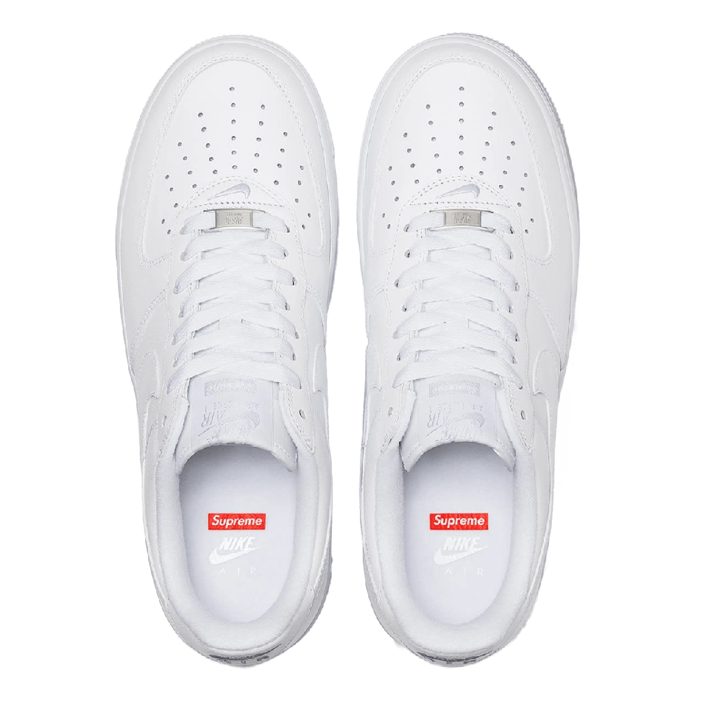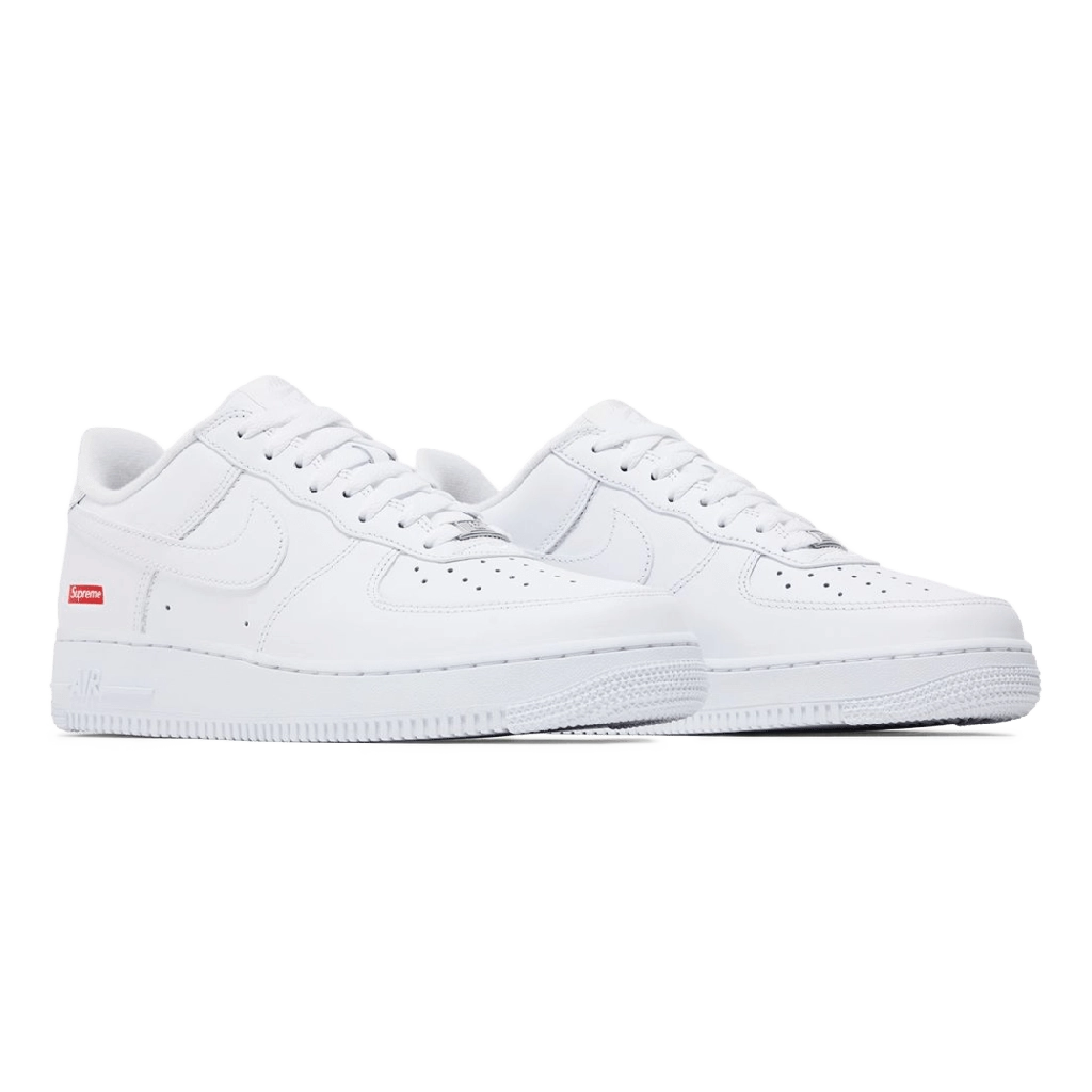 נייק Air Force 1 Low Supreme Box Logo White משלבים את סגנון AF1 הקלאסי עם המיתוג האייקוני של Supreme למראה רחוב בולט. חלק עליון מעור לבן איכותי, פרטי לוגו Supreme בולטים ועיצוב נמוך יוצרים שילוב של סגנון קלאסי ונוחות יומיומית. ריפוד Air וסוליית גומי עמידה מספקים שימוש נוח לאורך כל היום.