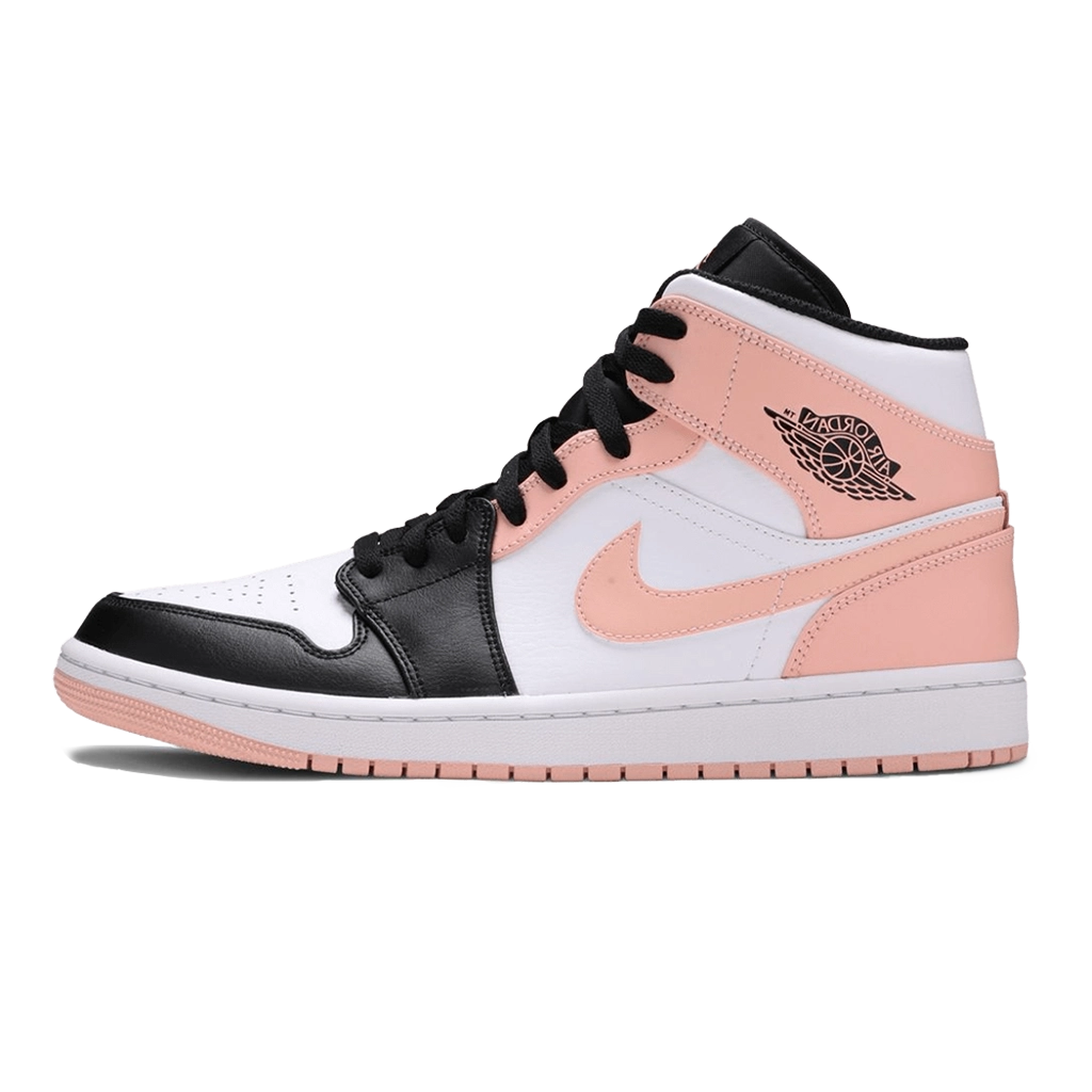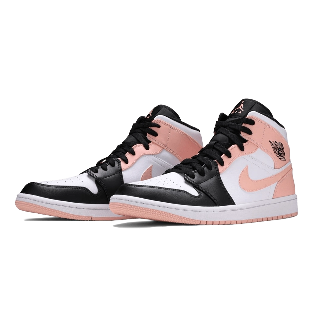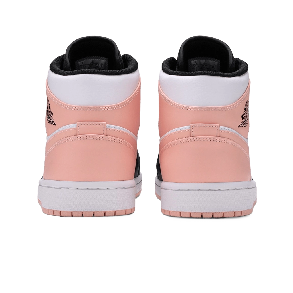 נעלי Air Jordan 1 Mid Crimson Tint משלבות שחור ולבן קלאסיים עם נגיעות ורודות עדינות למראה רענן וייחודי. שילוב מושלם בין סטייל מודרני למורשת Jordan.