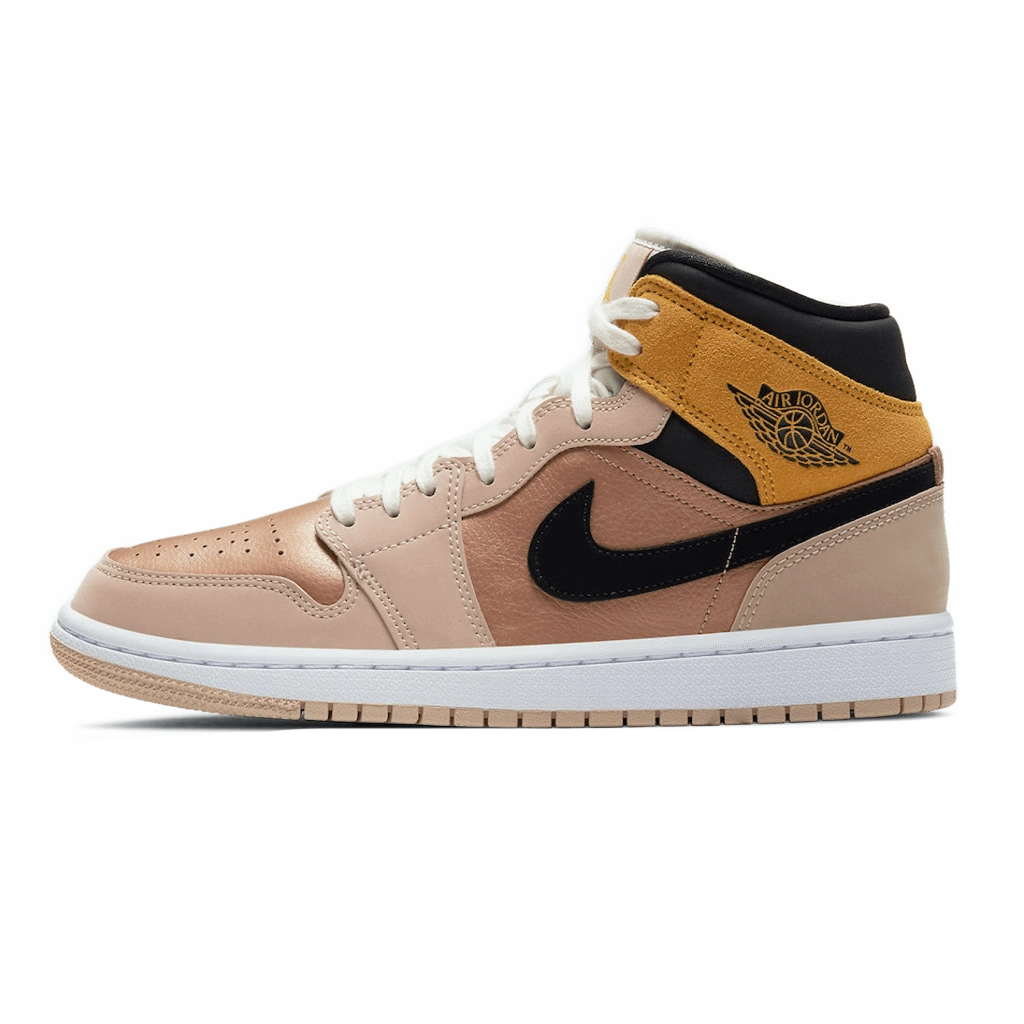 שדרגו את הסגנון שלכם עם Air Jordan 1 Mid SE Particle Beige, בגוונים אלגנטיים של Particle Beige, Metallic Red Bronze, University Gold ושחור. עשוי מעור פרימיום, סילואט מיד-טופ זה מספק נוחות ועמידות. שילוב הצבעים הבולט משדרג את עיצוב Jordan האיקוני, ומעניק נראות מרשימה לכל אוסף.