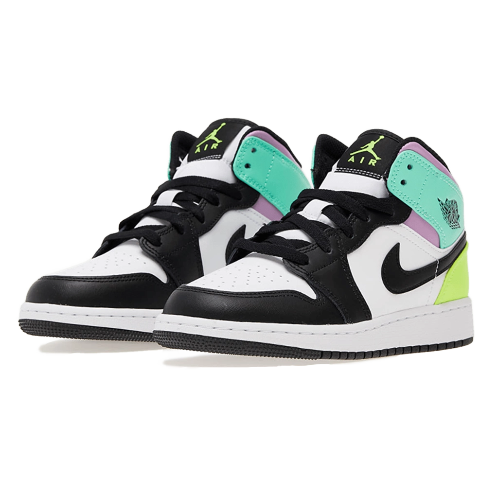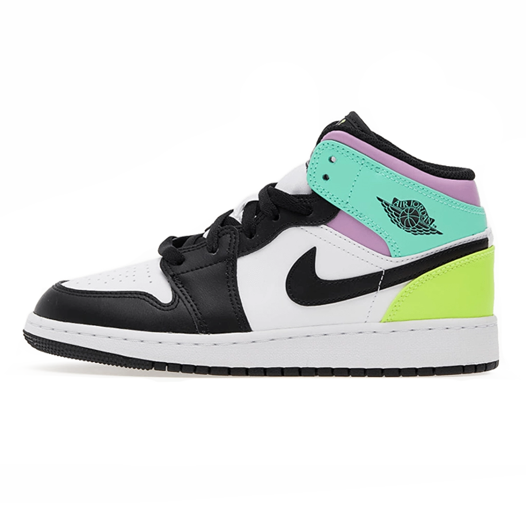 נעלי Air Jordan 1 Mid GS בצבעי לבן, Volt, Green Glow ושחור מציעות עדכון צבעוני ומרהיב לסילואט הקלאסי של ג’ורדן. עם בסיס לבן נקי, שכבות בולטות של Volt ו-Green Glow, לצד פרטים שחורים עדינים, הנעל משלבת צבע שובב עם עיצוב על-זמני. עשויה עור איכותי עם פרטי מותג אייקוניים, היא מספקת נוחות לאורך כל היום, עמידות וסגנון בולט ליום-יום.