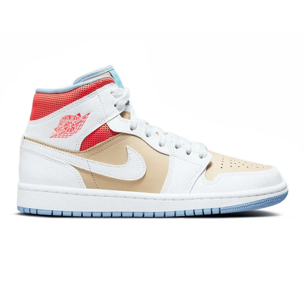 נעלי Air Jordan 1 Mid SE בצבעי Sesame, לבן, Flash Crimson ו-Psychic Blue מציעות פרשנות עכשווית וצבעונית לסילואט הקלאסי. עם עליונית בצבע שומשום בשילוב פרטים לבנים, אדומים מודגשים וכחולים בולטים, הנעל מושכת את העין עם פלטת צבעים דינמית. עשויה עור איכותי עם מיתוג קלאסי של ג’ורדן, היא מספקת נוחות לאורך זמן, עמידות וסגנון ורסטילי שמתאים למגרש וליום-יום.