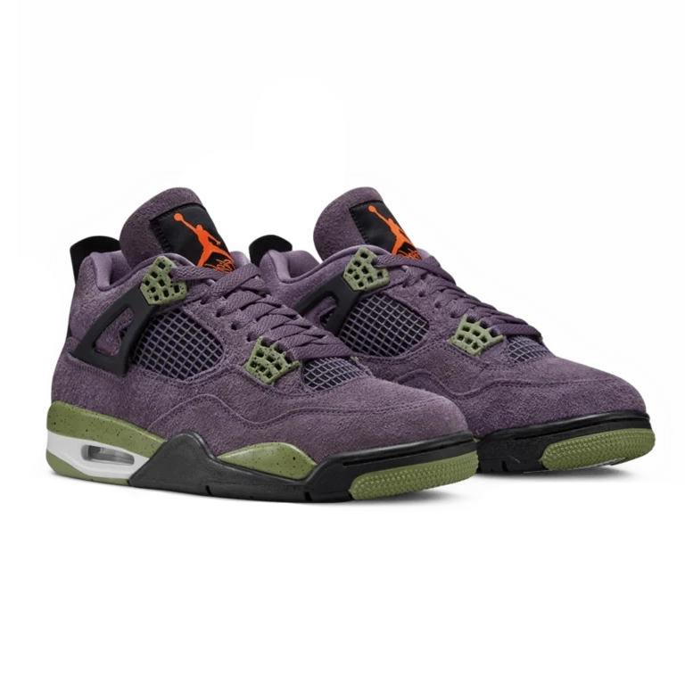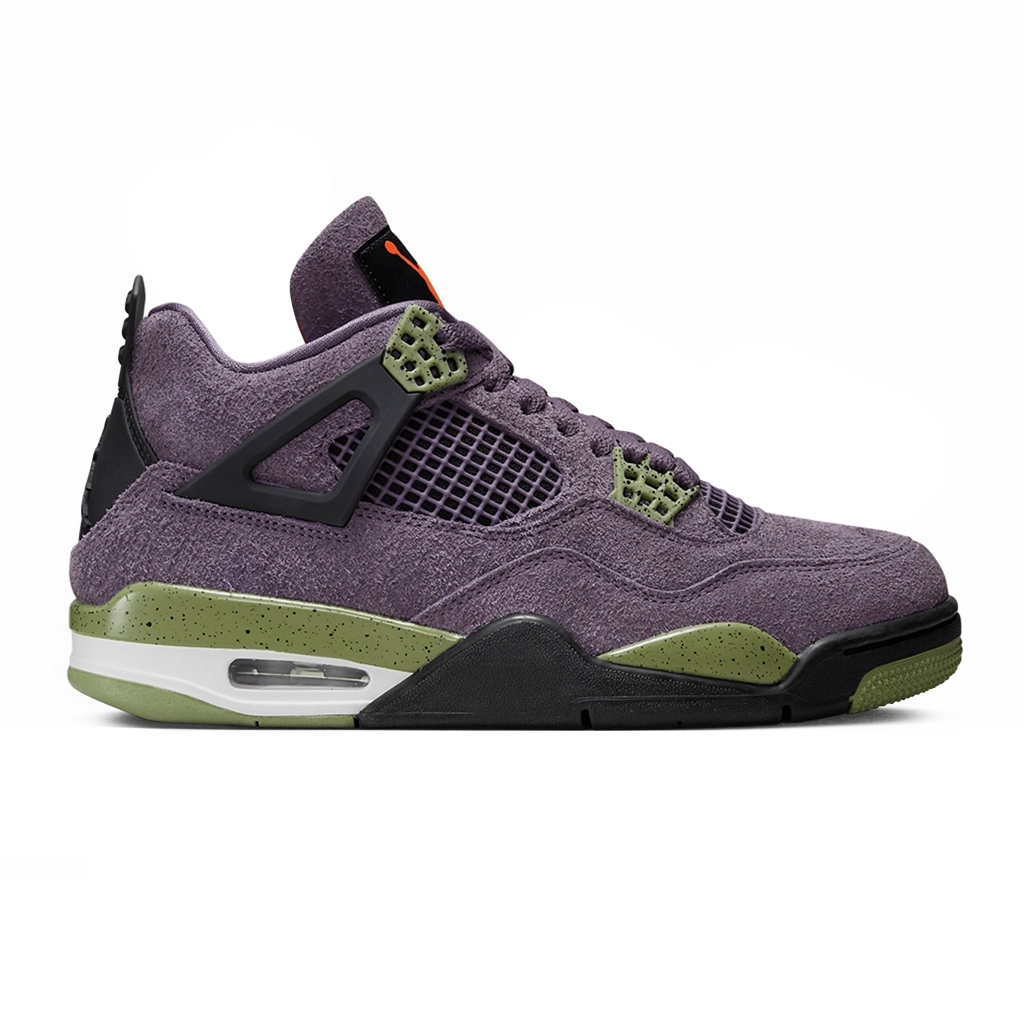 ה-Air Jordan 4 Retro ‘Canyon Purple’ מחדש סילואט קלאסי עם אלמנטים עיצוביים נועזים ומודרניים. עם עליון מעור איכותי בצבע Canyon Purple, השיתוף פעולה מציג הדגשים בצבע Anthracite ברשת, תגי הלשון, כנפיים, לוחות עקב ושרוכים. העיצוב מתאפיין גם במיתוג בצבע Alligator green ו-Safety Orange, וכנפיים וסוליה עם דוגמת ופל מנוקדת. תג Air Jordan ארוג על הלשון המרופדת ומיתוג Nike Air על העקב משלימים את המראה המיוחד, המשלב מורשת עם סגנון עכשווי.