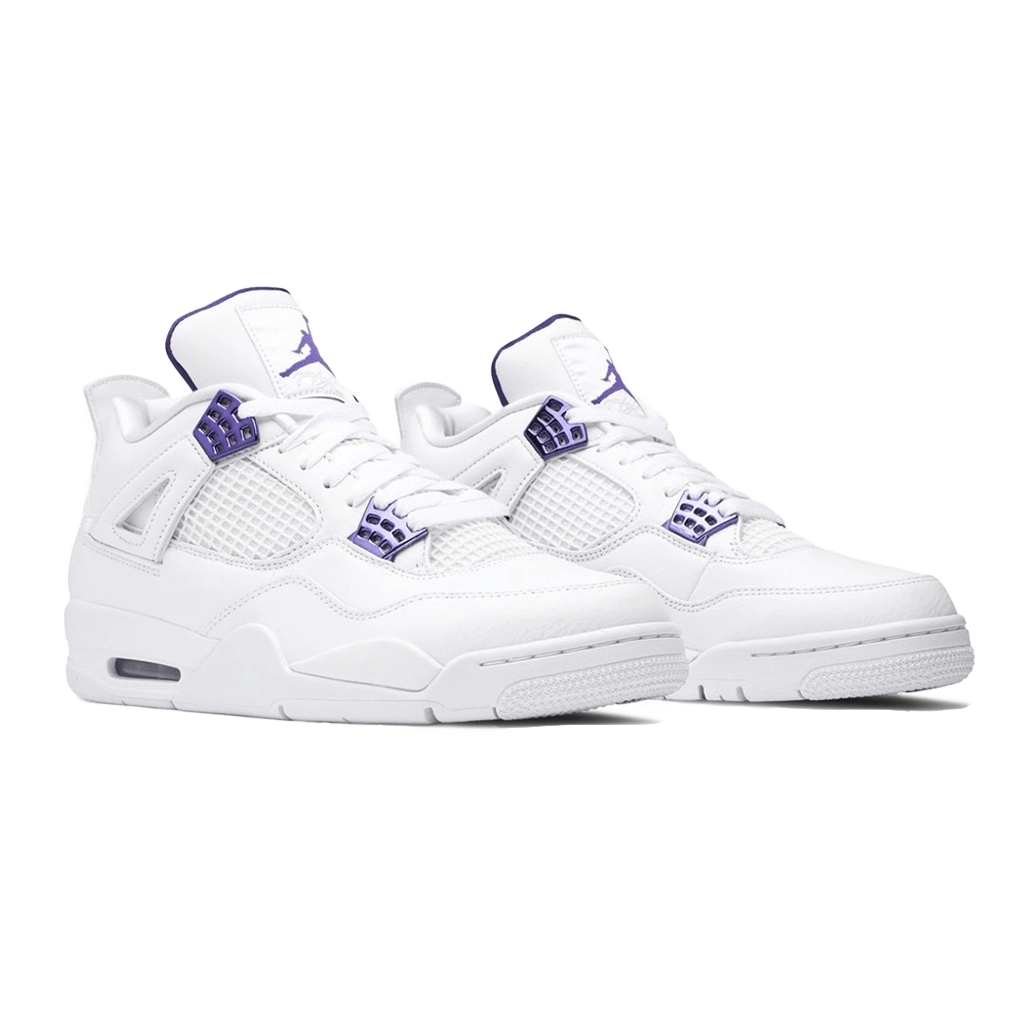 נעל ה-Air Jordan 4 Retro בצבע לבן וסגול Court Purple משלבת בין מורשת קלאסית לעיצוב מודרני מרשים. החלק העליון עשוי עור לבן איכותי עם פרטים מטאליים בצבע סגול בוהק ונגיעות של כסף מטאלי, ליצירת מראה ייחודי. הפאנלים האייקוניים מרשת, הסוליה האמצעית עם כרית האוויר הגלויה והסוליה החיצונית העמידה מבטיחים נוחות, תמיכה ואחיזה לאורך כל היום.