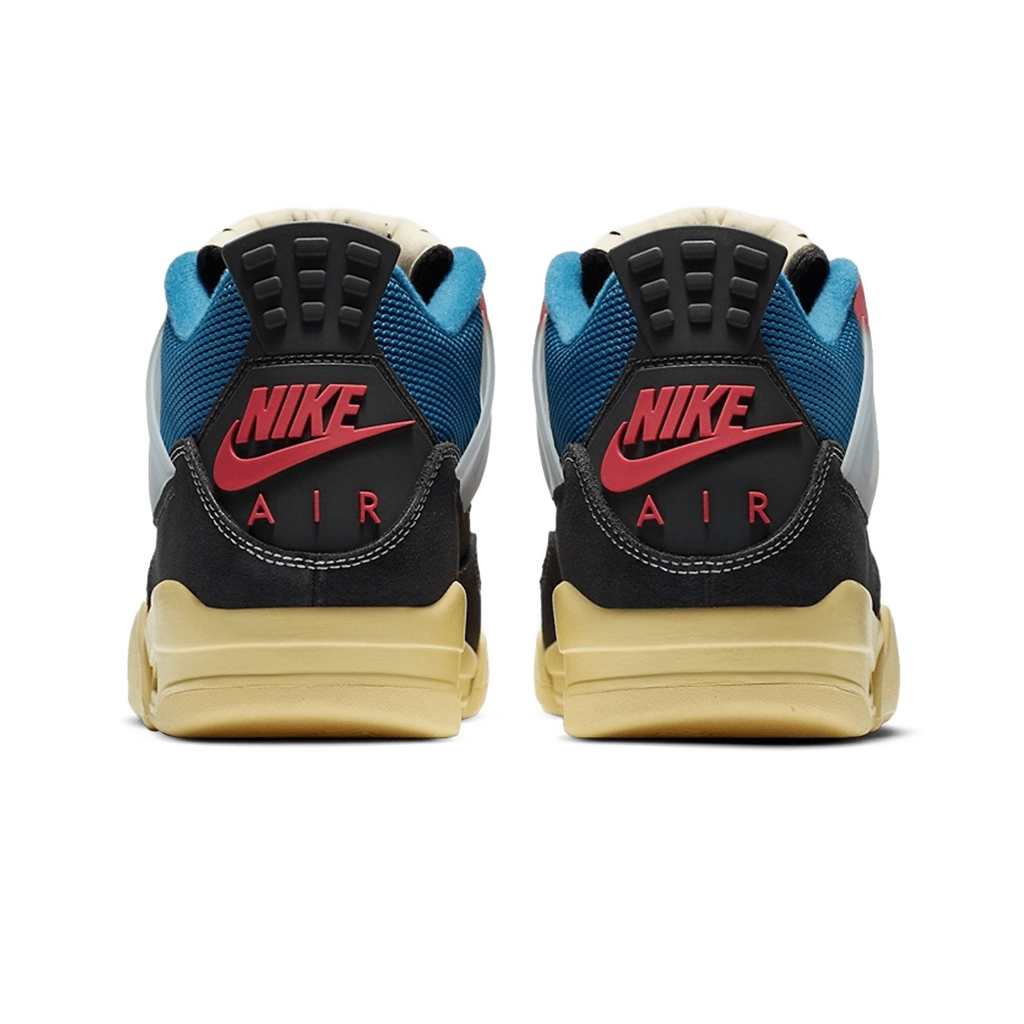 ה-Union LA x Air Jordan 4 Retro ‘Off Noir’ מחדש סילואט קלאסי עם אלמנטים עיצוביים נועזים ומודרניים. עם עליון מעור שחור המשלב רשת שחורה בתיבת האצבעות ורשת כחולה סביב הקרסול, שיתוף הפעולה מציג כנפיים מבניות חצי שקופות מחוברות לעיניות אדומות מעוצבות. העיצוב מתאפיין גם בתג ‘UN/LA’ על לוח הצד וסוליה צהובה המעניקה מראה וינטג’. תג Air Jordan ארוג על הלשון המרופדת ומיתוג Nike Air על העקב משלימים את המראה המיוחד, המשלב מורשת עם סגנון עכשווי.