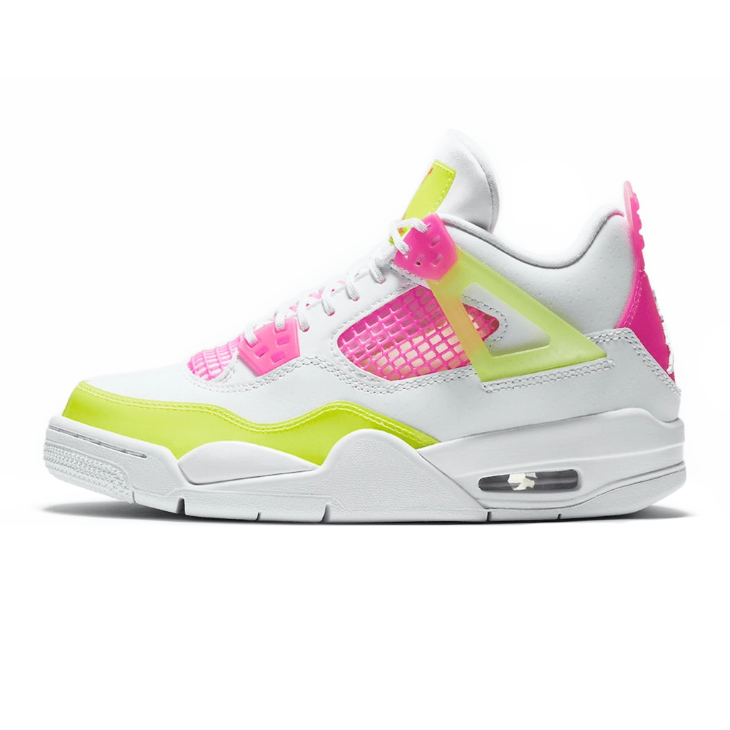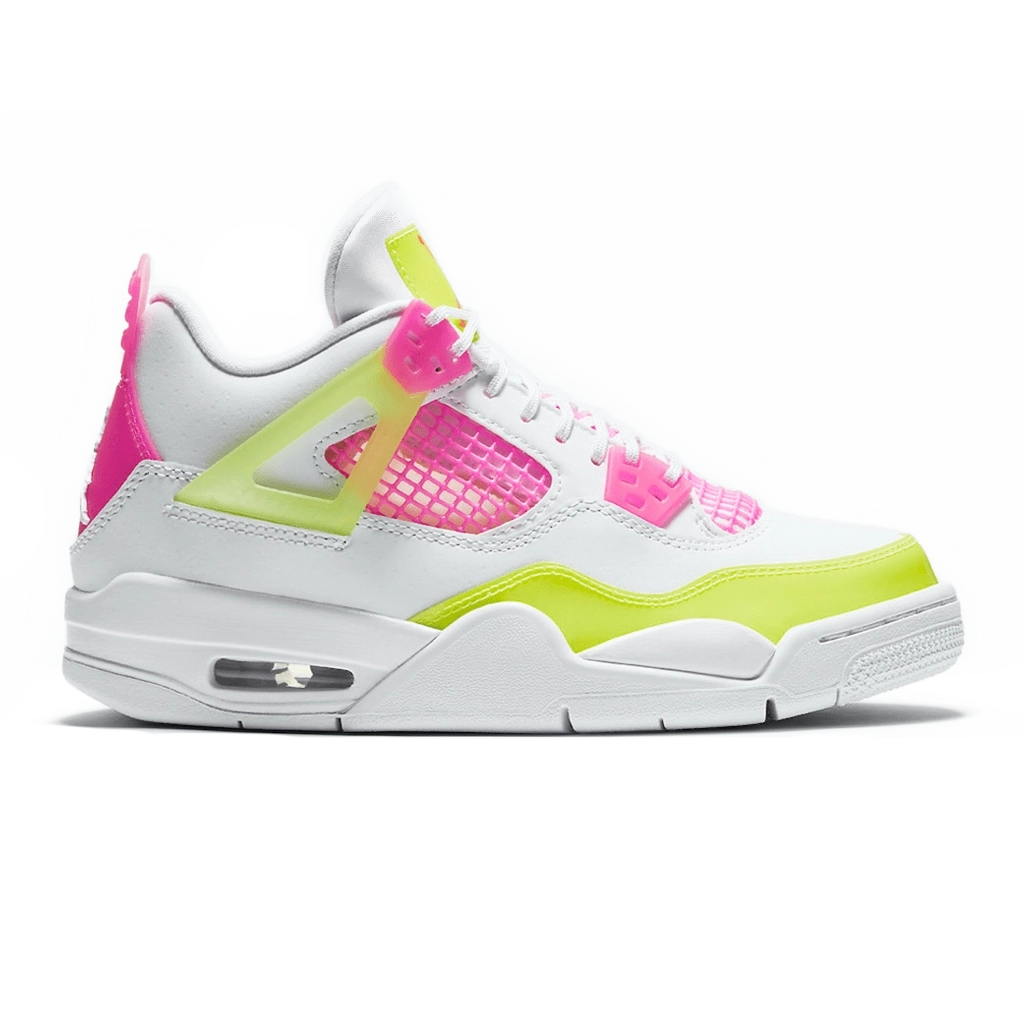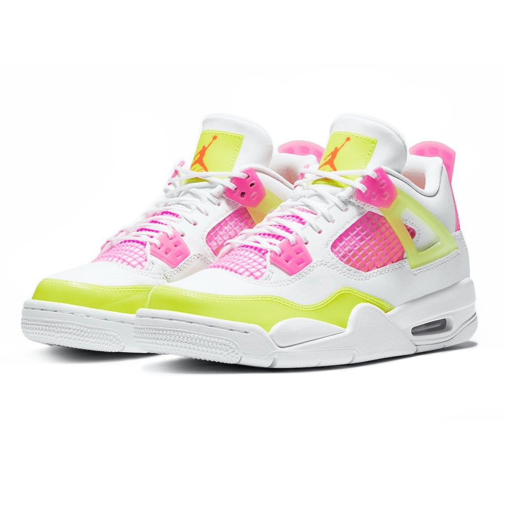 ה-Air Jordan 4 Retro ‘Lemon Venom’ מעניקה טוויסט צבעוני לסילואט הקלאסי, עם עליון עור לבן המודגש בגווני Lemon Venom ו-Pink Blast ניאוניים. העיצוב כולל כנפיים שקופות, רשת ורודה ותג Jumpman צהוב בוהק על הלשון. שוחררה ב-14 באוגוסט 2020, נעל זו משלבת צבעים נועזים עם עיצוב ה-Air Jordan 4 האייקוני.