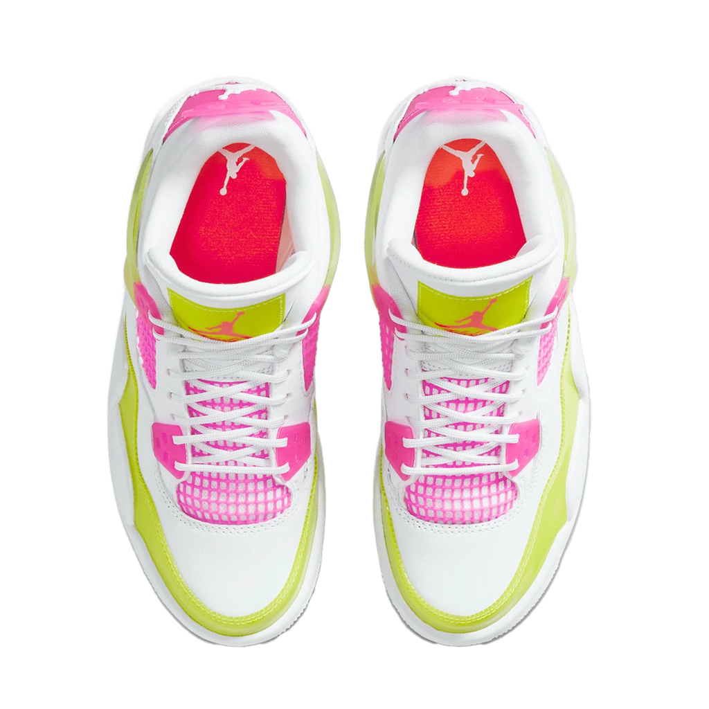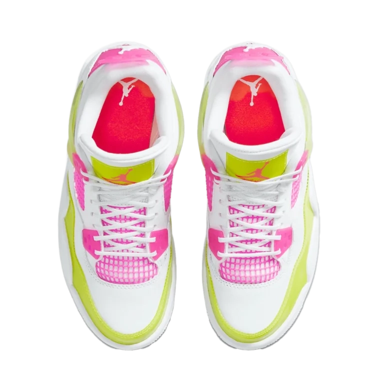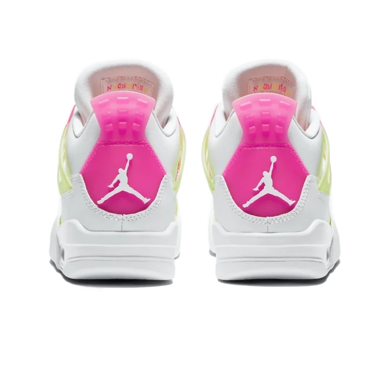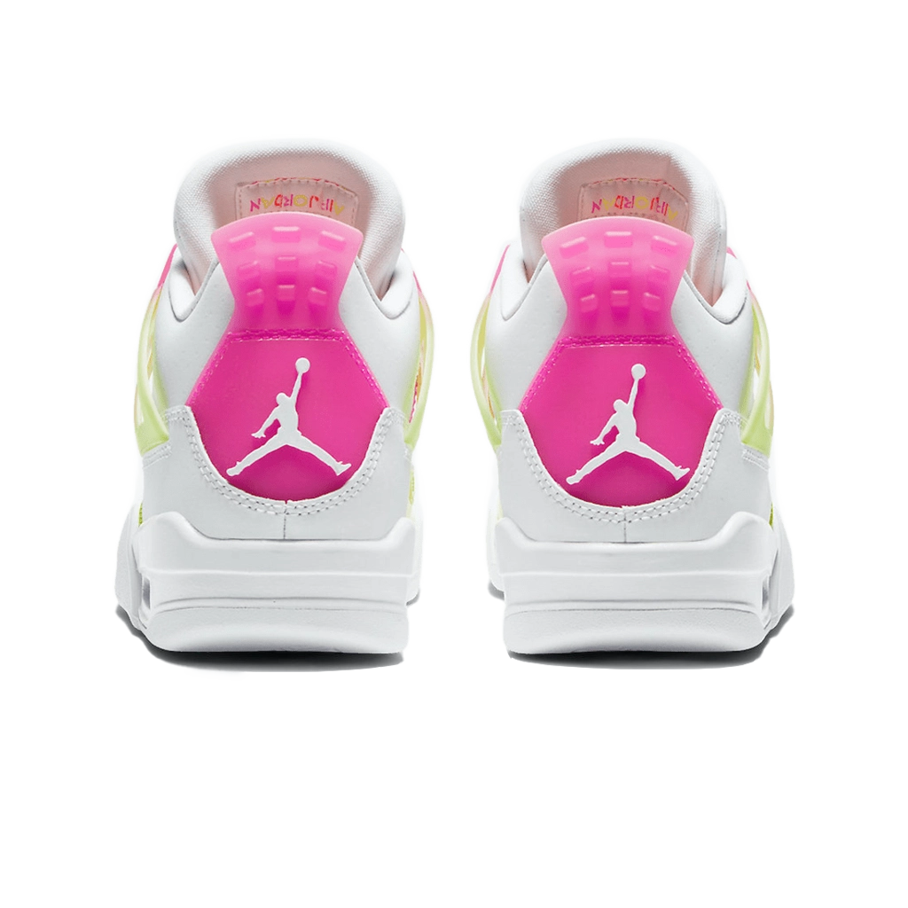 ה-Air Jordan 4 Retro ‘Lemon Venom’ מעניקה טוויסט צבעוני לסילואט הקלאסי, עם עליון עור לבן המודגש בגווני Lemon Venom ו-Pink Blast ניאוניים. העיצוב כולל כנפיים שקופות, רשת ורודה ותג Jumpman צהוב בוהק על הלשון. שוחררה ב-14 באוגוסט 2020, נעל זו משלבת צבעים נועזים עם עיצוב ה-Air Jordan 4 האייקוני.