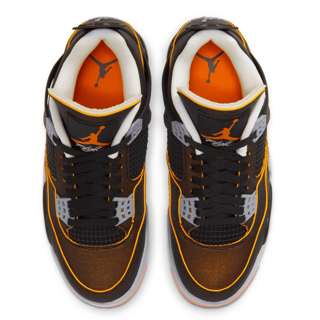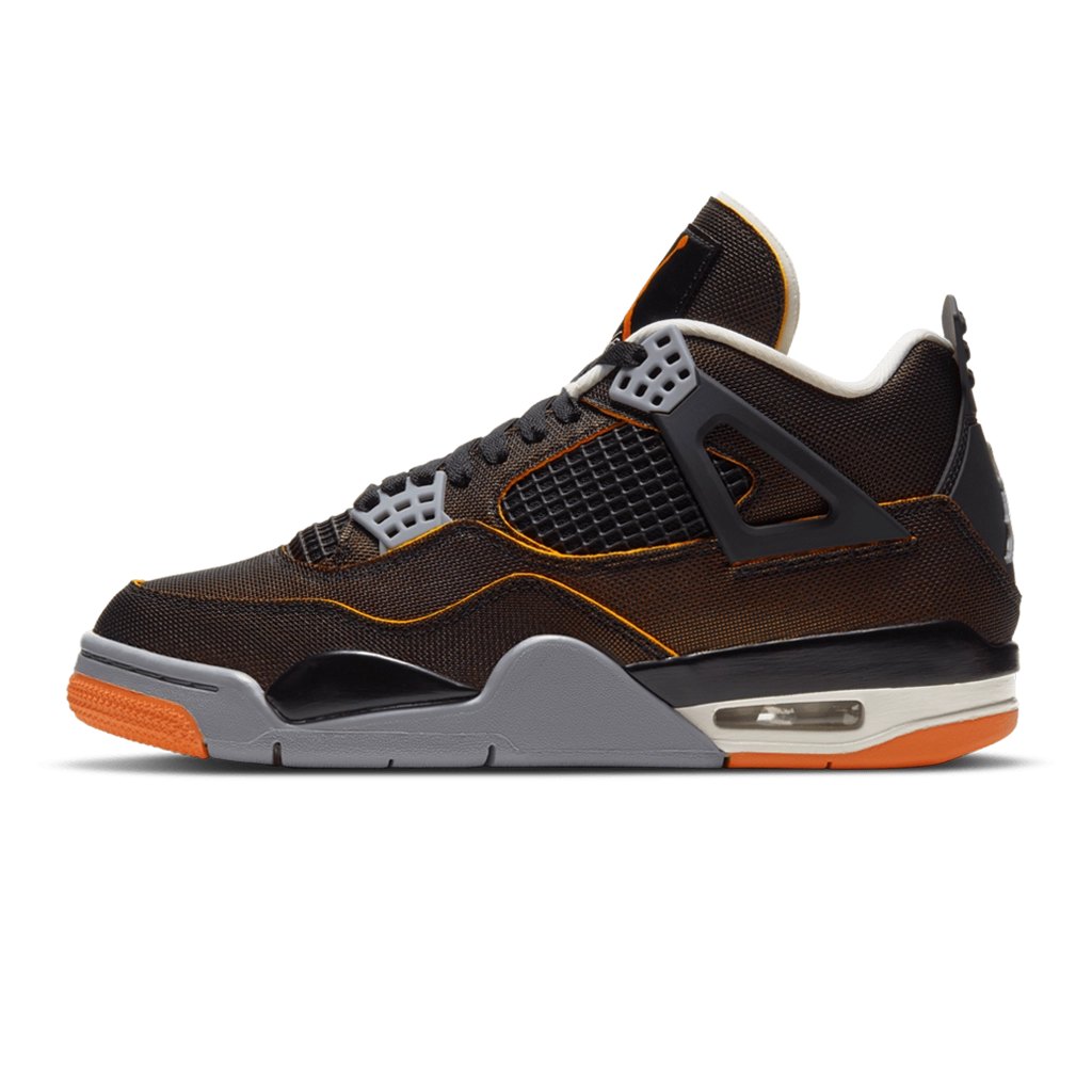 ה-Air Jordan 4 Retro “Starfish” מחדש את הסילואט הקלאסי של AJ4 עם עיצוב עכשווי וצבעוני. הנעל כוללת עליון רשת מטאלית שחורה, עם תוספות צבעוניות בצבע Starfish המודגשות באמצעות בנייה בקצוות גולמיים, מה שנותן לה מראה מפורק. טאב עקב וכנפיים מ-TPU מט, יחד עם רשת שחורה באזור הרבע, מזכירים את תכונות ה-Jordan 4 הקלאסיות. הלשון החשופה, המעוטרת בתג Jumpman ארוג, מוסיפה נגיעה מודרנית. מתחת, סוליה בצבעים שחור, אפור ו-Starfish משלימה את העיצוב הבולט.