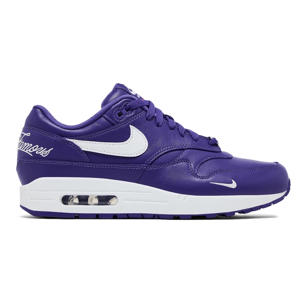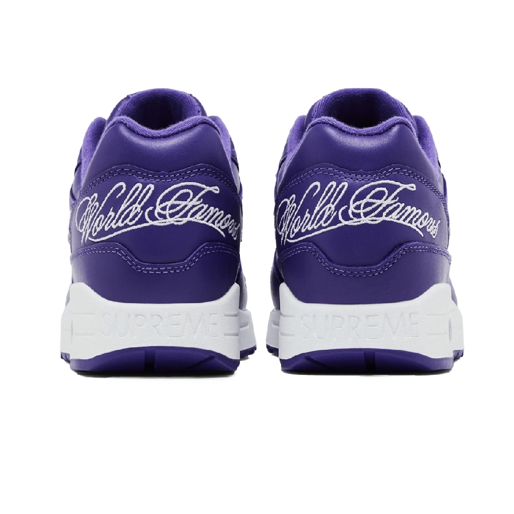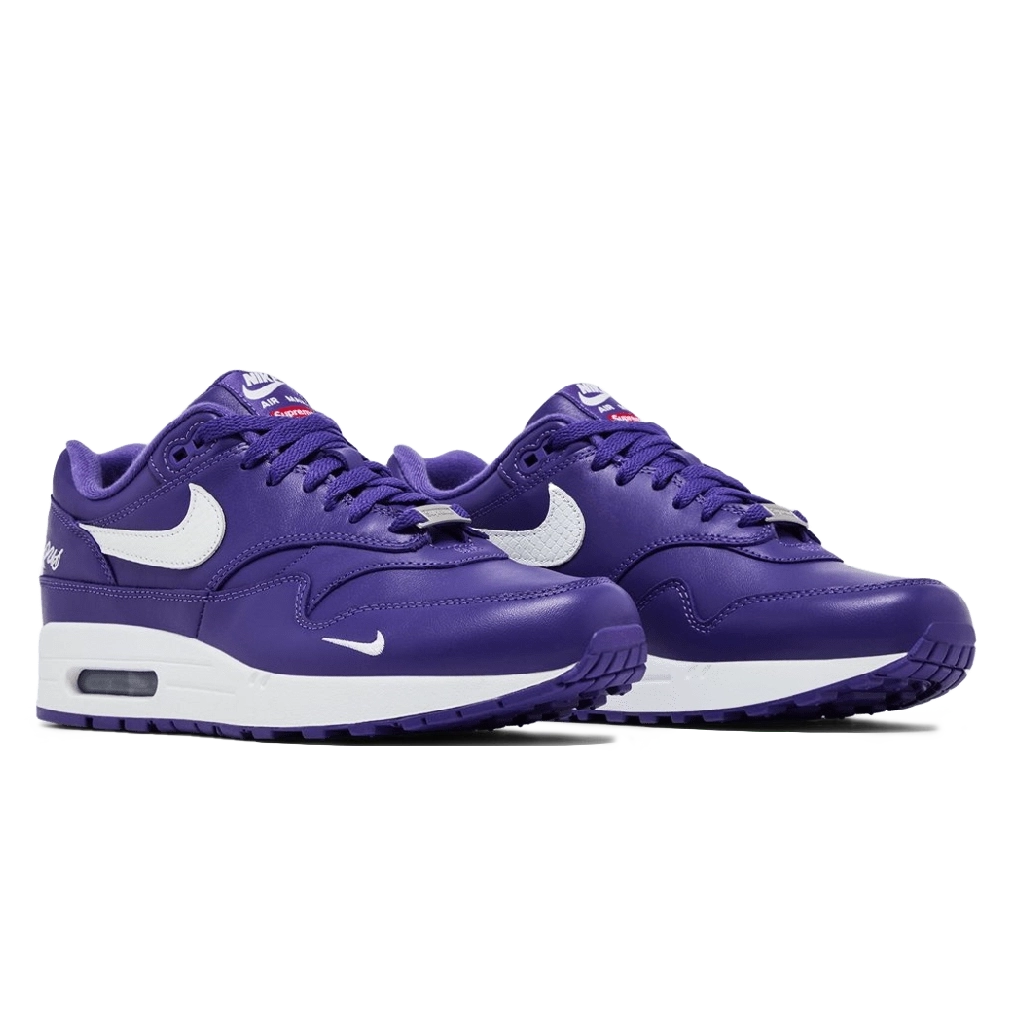 דגם Nike Air Max 1 ’87 SP “Supreme Varsity Purple” מציע עדכון נועז ודינמי לצללית הקלאסית של Air Max 1. הנעל כוללת חלק עליון בצבע סגול בוהק עם פרטים שחורים ולבנים, בשילוב חומרים איכותיים כמו עור, זמש ורשת לנוחות ועמידות. יחידת האוויר הגלויה בסוליה מספקת ריפוד רגיש, והסוליה העמידה מבטיחה אחיזה יציבה. סניקרס בולט המשלב צבעים בולטים עם עיצוב אייקוני של Air Max 1.