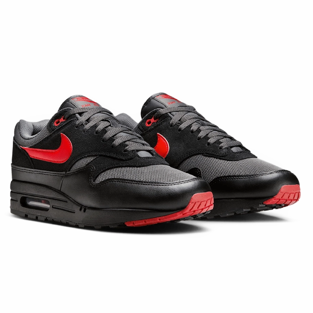 דגם Nike Air Max 1 “Black / Iron Grey / University Red” מציע עדכון קלאסי לצללית האייקונית של Air Max 1. הנעל כוללת חלק עליון בשחור ואפור ברזל עם פרטים אדומים University Red ליצירת ניגודיות בולטת, בשילוב חומרים איכותיים כמו עור, זמש ורשת לנוחות ועמידות. יחידת האוויר הגלויה מספקת ריפוד לאורך כל היום, והסוליה העמידה מבטיחה אחיזה ויציבות. סניקרס רב-תכליתי שמשלב סגנון קלאסי עם ניגודים צבעוניים מודרניים.