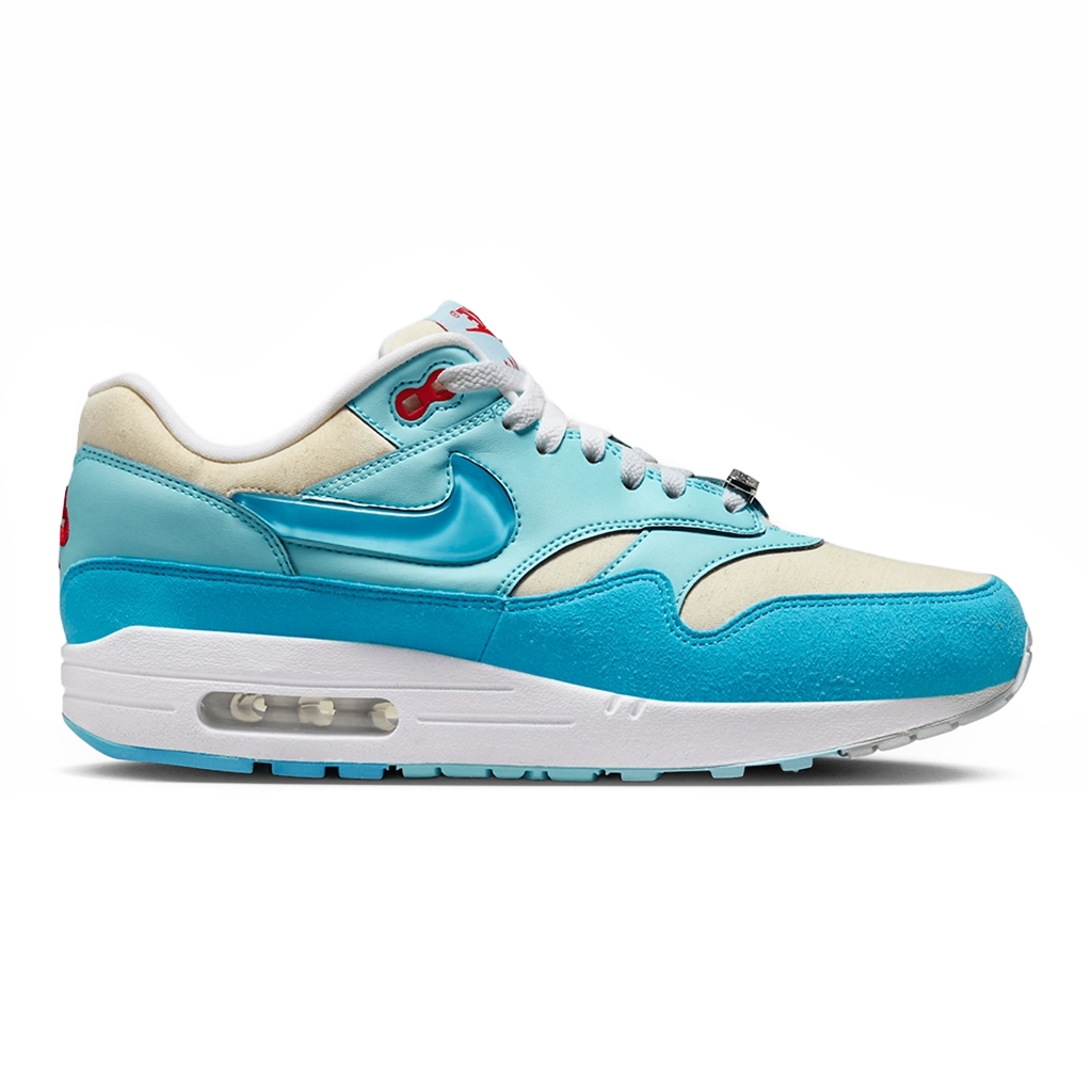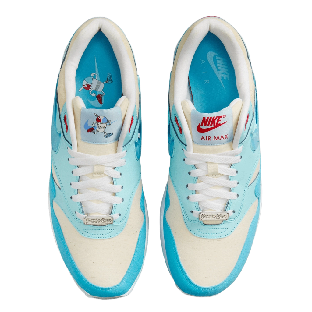 Nike Air Max 1 “Puerto Rican Day Blue Gale” משדר כבוד למורשת הפוארטו ריקנית עם שילוב צבעים נועז ותוסס. הדגם מציג גווני Blue Gale עמוקים עם נגיעות לבן, ומביא לידי ביטוי גם סטייל וגם זהות תרבותית. עליונית מעור ורשת איכותיים מספקים נוחות ועמידות, בעוד יחידת Air הגלויה מספקת ריפוד אייקוני. עם פרטי מותג קלאסיים וסילואטה חלקה, נעל זו משלבת השראה תרבותית עם עיצוב על-זמני.