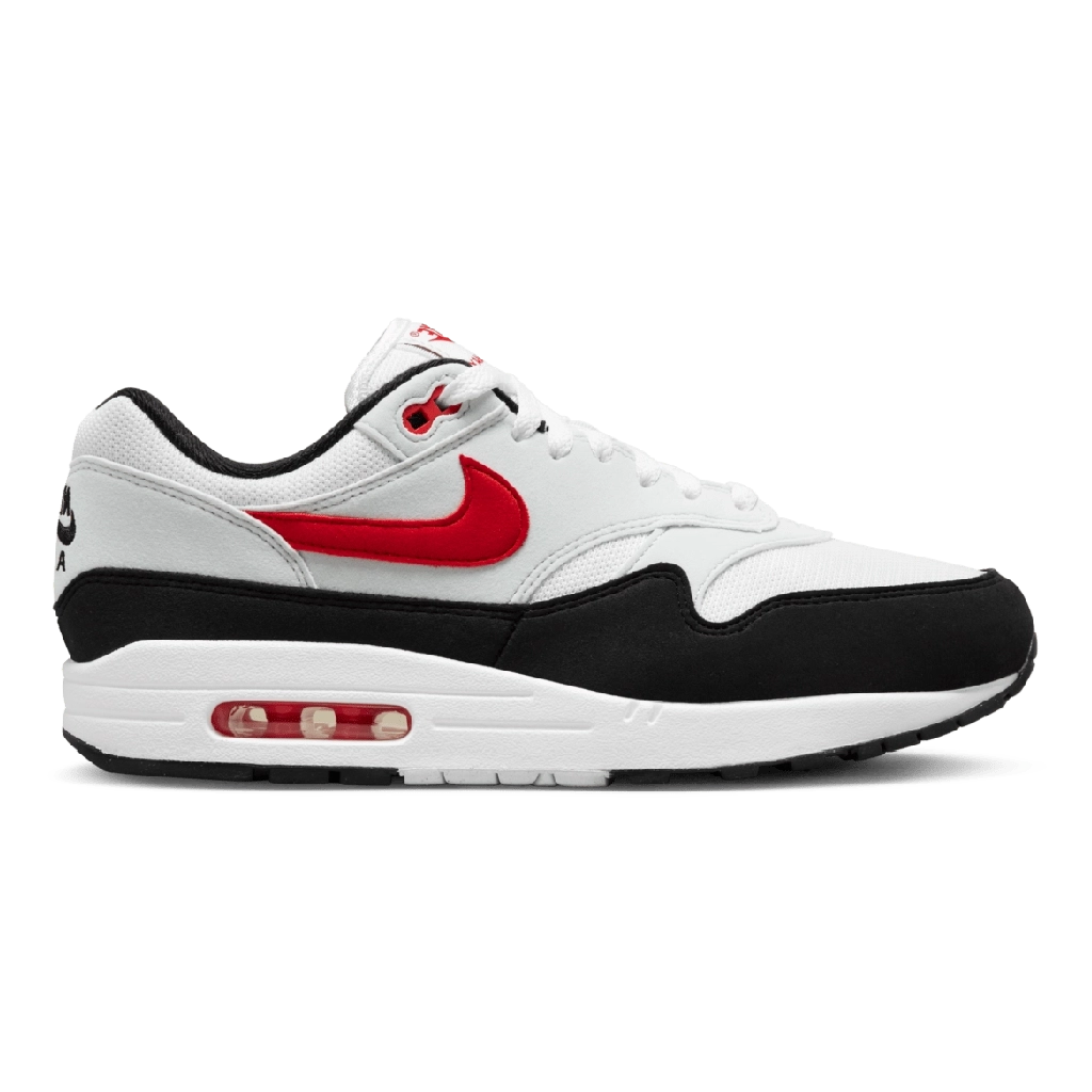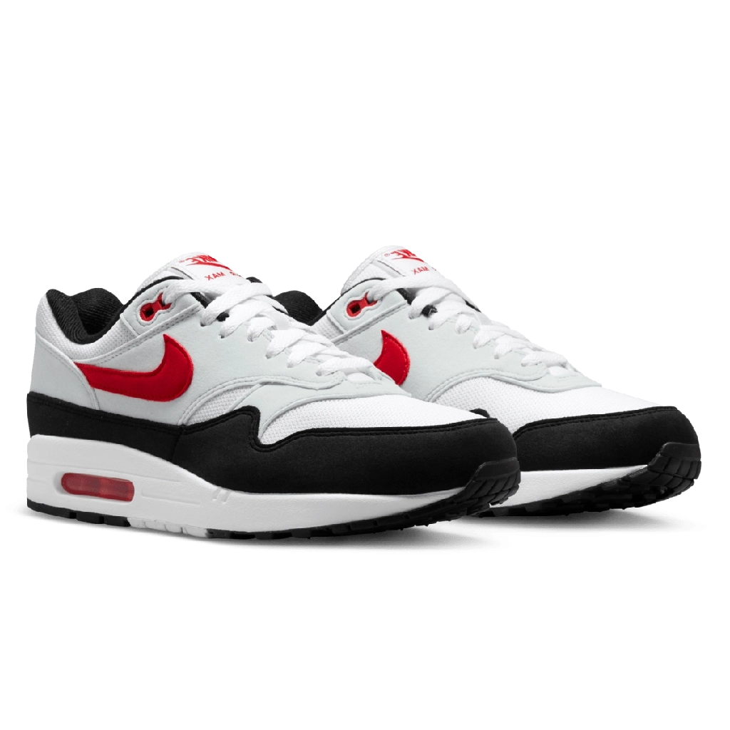 Nike Air Max 1 “Pure Platinum and University Red” מחזיר את הצבעוניות הקלאסית עם שילוב מרענן של לבן, אפור ונגיעות אדום עז. הדגם עשוי מעור, זמש ורשת באיכות גבוהה, ומשלב בין נוחות לביצועים ועיצוב אורבני מושלם. יחידת ה-Air Max הגלויה מעניקה רכות וקלילות בכל צעד, בעוד שסמל ה-Swoosh באדום בולט מוסיף ניגוד ייחודי למראה האייקוני. סניקרס שמייצג מורשת, אנרגיה וסטייל יומיומי.