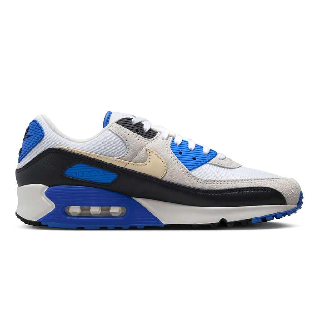 נעלי Nike Air Max 90 Premium “Racer Blue” מעניקות גרסה רעננה לדגם האייקוני עם פלטת צבעים ספורטיבית ומרעננת. בסיס לבן ואפור בהיר בשילוב נגיעות כחול בולטות (Racer Blue) יוצר מראה מודרני עם מורשת האייר מקס הקלאסית. הנעל עשויה עור איכותי, רשת וחומרים סינתטיים המספקים נוחות, עמידות ואוורור לאורך כל היום. יחידת ה־Max Air הגלויה בעקב מספקת ריפוד רך ותגובה מהירה, בעוד שסוליית הוואפל הקלאסית מבטיחה אחיזה יציבה. מושלמת למי שרוצה נעל ספורטיבית שמאזנת בין סטייל לנוחות.