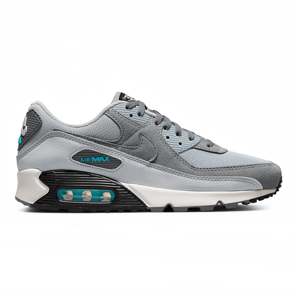 נעלי Nike Air Max 90 “Wolf Grey Chlorine Blue” מחדשות את סילואט האייר מקס הקלאסי עם פלטת צבעים מודרנית וספורטיבית. בסיס אפור כהה (Wolf Grey) משולב בנגיעות כחול חמצני (Chlorine Blue) יוצא מראה אלגנטי עם נגיעה מודרנית. הנעל עשויה עור איכותי, רשת וחומרים סינתטיים המספקים עמידות, נוחות ואוורור לאורך כל היום. יחידת ה־Max Air הגלויה בעקב מספקת ריפוד רך ותגובה מהירה, בעוד שסוליית הוואפל מבטיחה אחיזה יציבה. מושלמת למי שמחפש נעל ספורטיבית עם סגנון עדין ובולט.