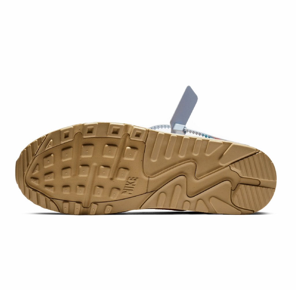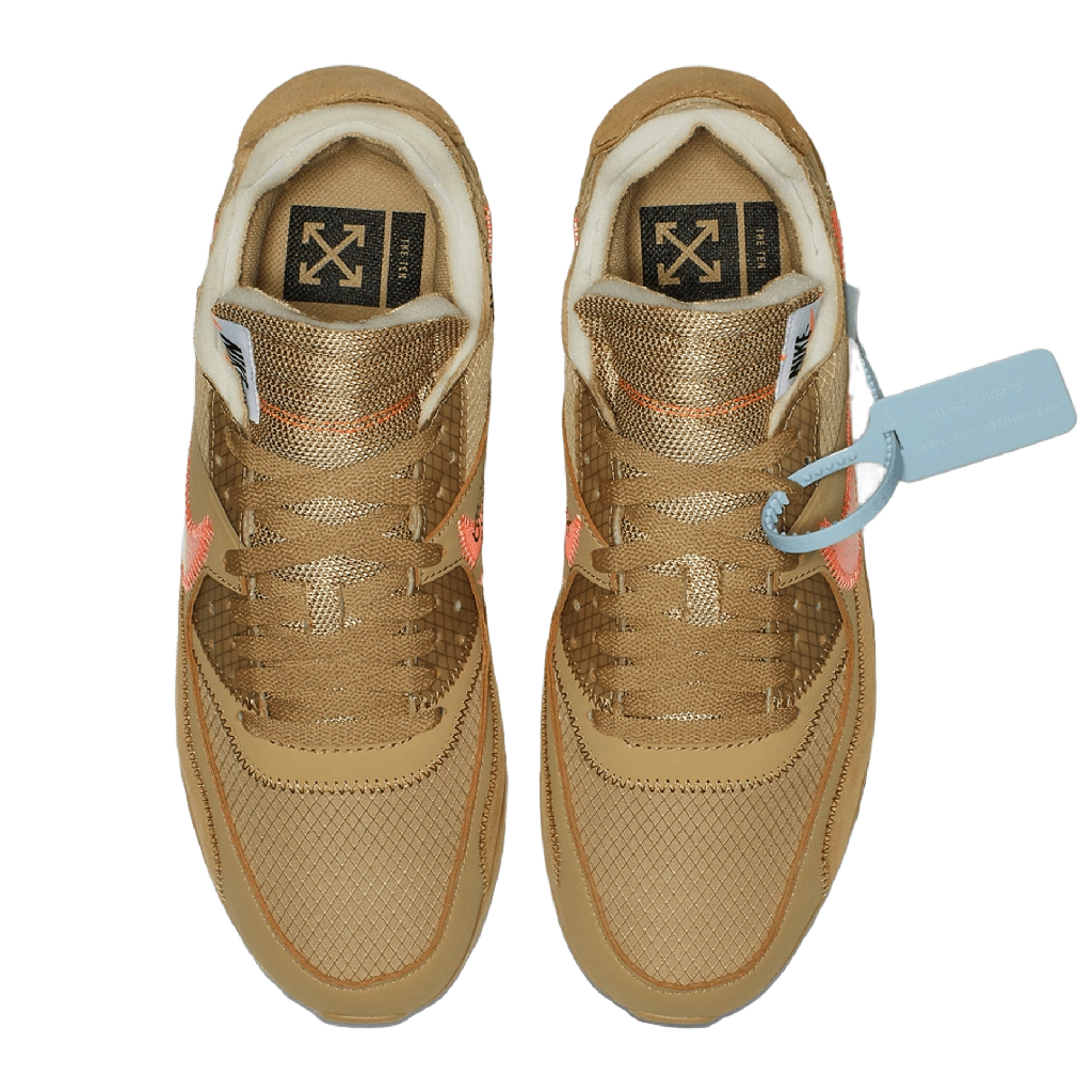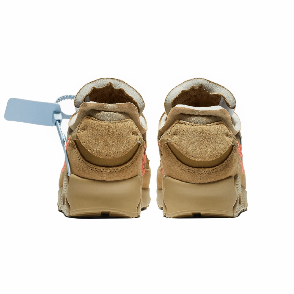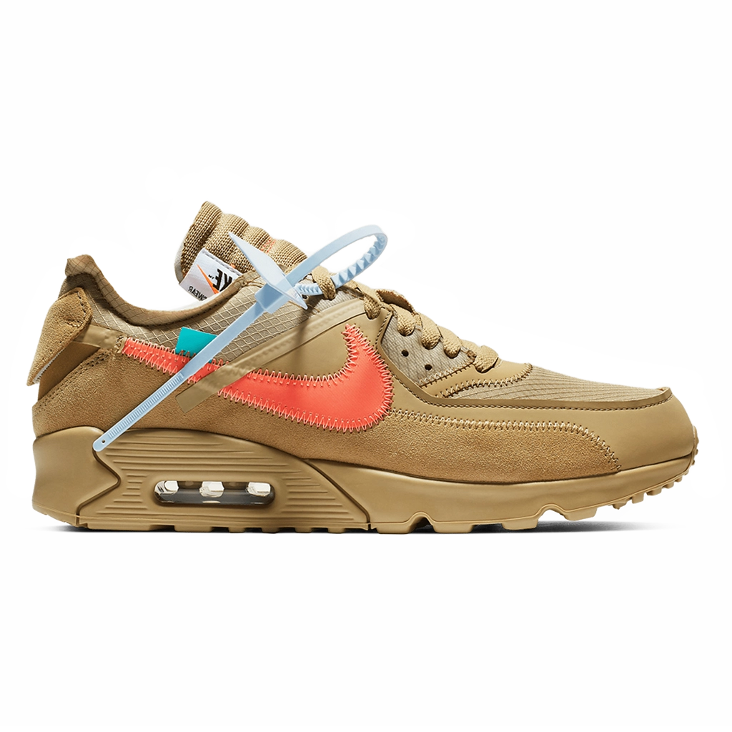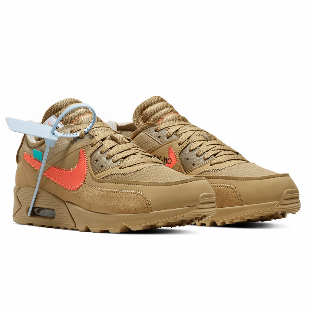 Off-White x Nike Air Max 90 “Desert Ore” מציגה עיצוב מחודש לאייקון הקלאסי, בהשראת השפה המפורקת הייחודית של וירג’יל אבלו. הנעל משלבת גוון בז’ רגוע עם פרטים ייחודיים של Off-White, כמו תפרים חשופים, תג כתום בולט ותג זיפ-טיי המזוהה עם המותג. העליון עשוי משילוב של זמש ובד איכותי לנוחות ועמידות, יחד עם יחידת Air גלויה המספקת רכות וסטייל רחוב נצחי.