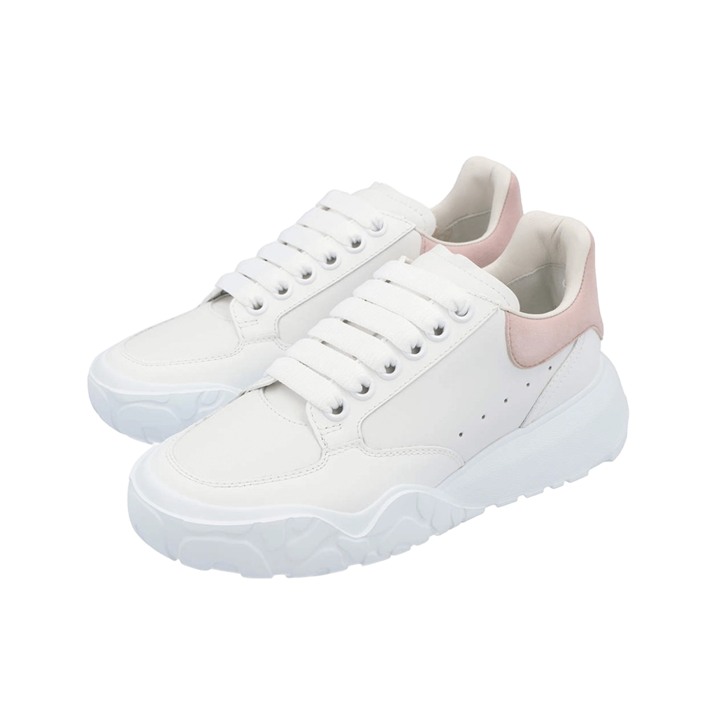 סניקרס Alexander McQueen Oversized בצבע לבן/ורוד מציעות סילואטה מודרנית ובולטת. עשויות מעור איכותי, הסניקרס כוללות סוליה עבה ומרופדת, נגיעות ורודות עדינות וסימני המותג המוכרים, ומספקות נוחות וסטייל רחוב יומיומי.