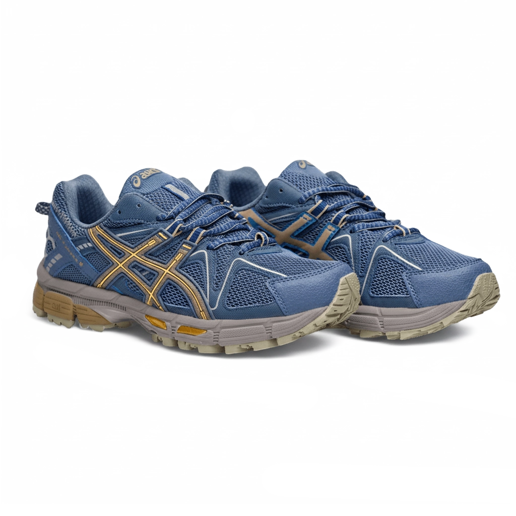 ה-ASICS GEL-Kahana 8 בצבע כחול-צהוב משלב ביצועי שטח גבוהים עם נוחות יומיומית חלקה, ומציע תמיכה מאווררת, יציבות מרופדת ואחיזה אמינה בכל סביבה. עליון הרשת מגביר זרימת אוויר, בעוד טכנולוגיית ה-GEL והסוליה העמידה מספקות יציבות והחזקה מצוינת – ממסלולי שטח ועד הליכה עירונית – בעיצוב צבעוני ובולט.
