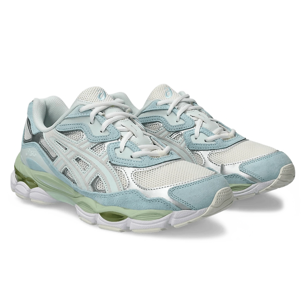 דגם ASICS GEL-NYC בצבע Cream Aquamarine משלב גוונים ניטרליים רכים עם נגיעות אקוומרין מרעננות למראה מודרני ואופנתי. החלק העליון מורכב מרשת נושמת עם שכבות סינתטיות תומכות, המעניקות עמידות ונוחות קלה. מערכת בלימת GEL וסוליה יציבה מספקות נוחות חלקה לאורך כל היום, מה שהופך את הסניקרס למושלם ללבוש יומיומי ולעירוניות.
