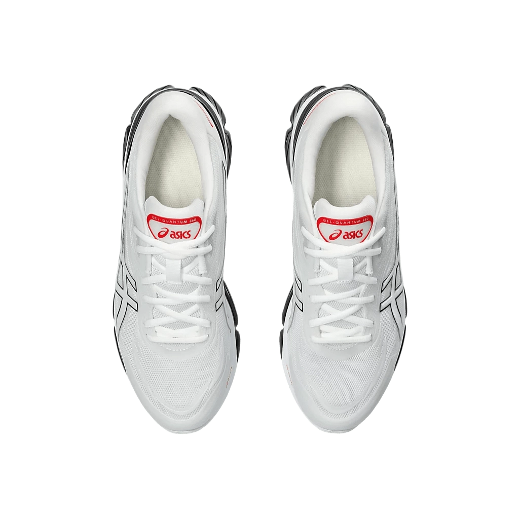 דגם ASICS GEL-Quantum 360 8 בצבע White Black Red משלב בסיס לבן נקי עם נגיעות שחורות ואדומות בולטות ליצירת מראה מודרני ודינמי. עם חלק עליון מרשת נושמת וריפוד GEL מלא, הוא מספק ספיגת זעזועים חלקה ונוחות רספונסיבית. מידסול מפוסל וסוליית גומי עמידה מעניקים יציבות ואחיזה, ומתאימים הן ללבישה יומיומית והן לפעילות ספורטיבית.