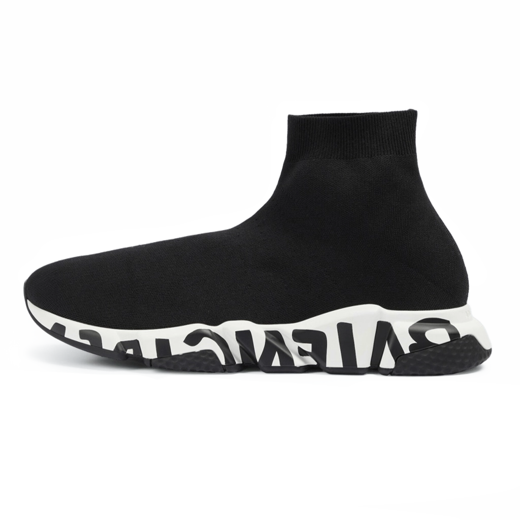Balenciaga Speed Graffiti Sneakers Black מגדירים מחדש את אופנת הרחוב המודרנית עם סילואט גרב חלק ופרטים בהשראת גרפיטי נועז. עוצבו לנוחות ולסטייל יחד, עם חלק עליון סרוג קל משקל, טכנולוגיית סוליה זוכרת וצורת סוליה עבה אך נקייה, המשלבת ביצועים עם מראה אופנתי. ההדפס בסגנון גרפיטי מוסיף נגיעה אורבנית עכשווית, ההופכת אותם לפריט חובה בתרבות הסניקרס.