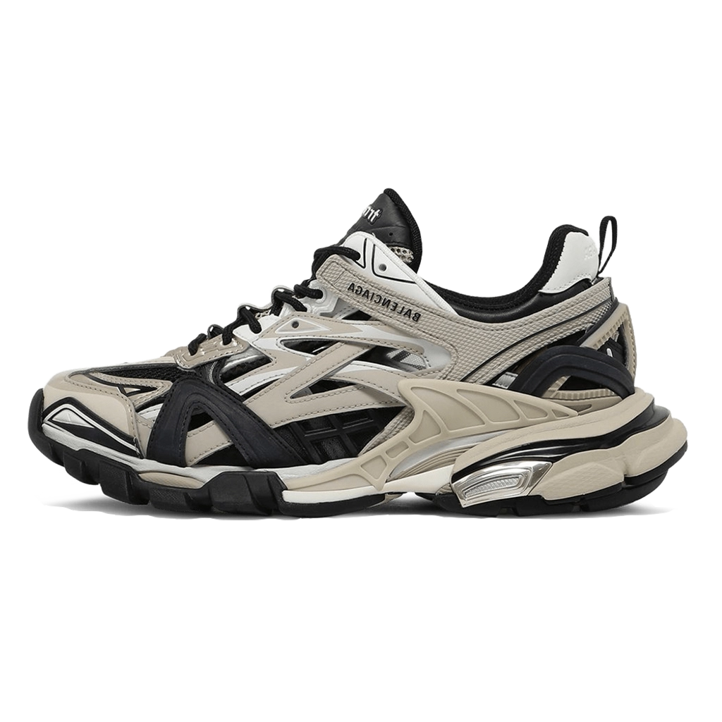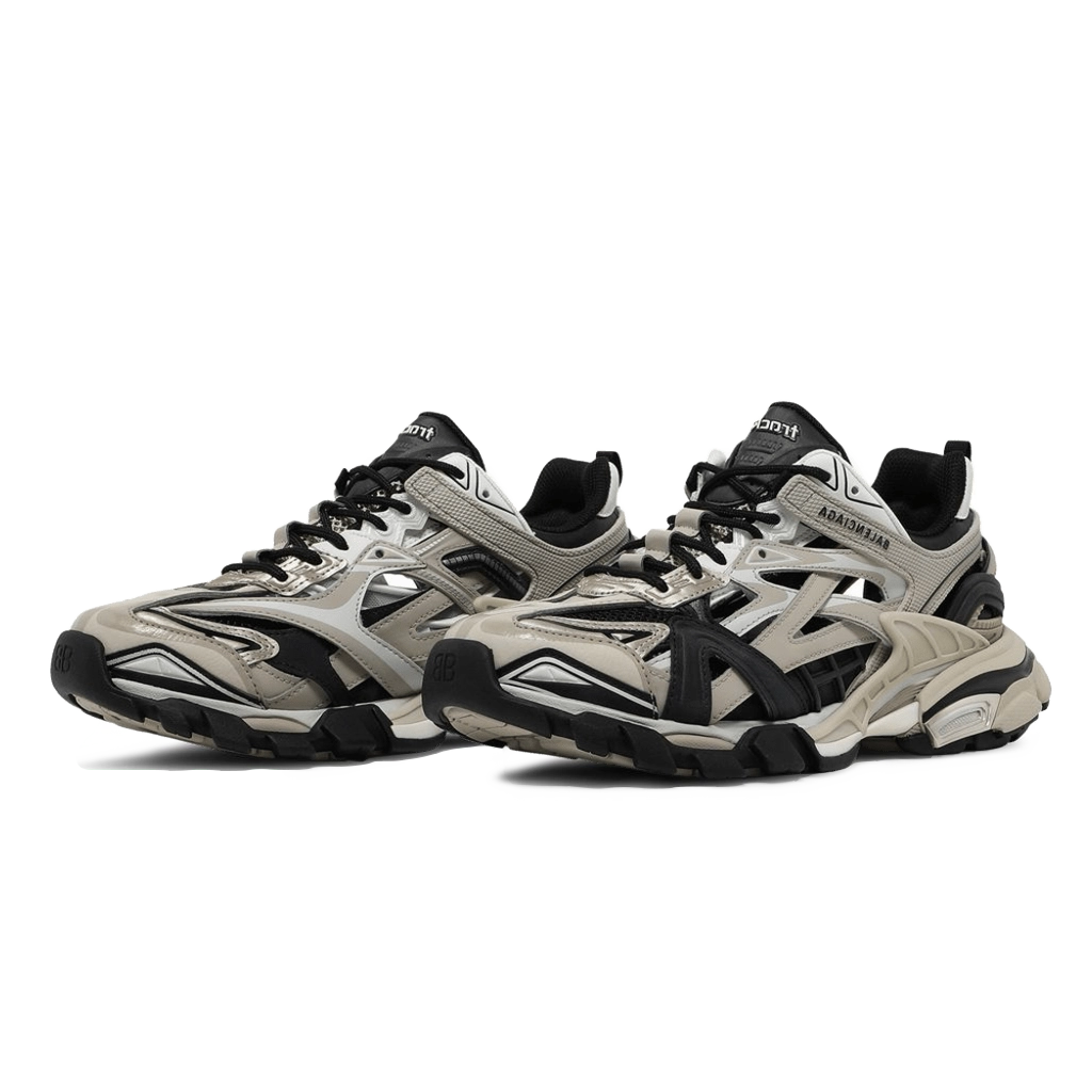 Balenciaga Track 2 Trainer Beige Black מציג עיצוב רב-שכבתי עם חומרים משולבים ליצירת מראה סניקרס עתידני ונועז. החלק העליון משלב רשת, עור ובדים טכניים לנשימה, עמידות ונוחות פרימיום. יחידת הסוליה המורכבת מספקת ריפוד ותמיכה מעולים, בעוד הצבעים בז’ ושחור יוצרים מראה רב-שימושי ובולט שמתאים לאופנת רחוב מודרנית.