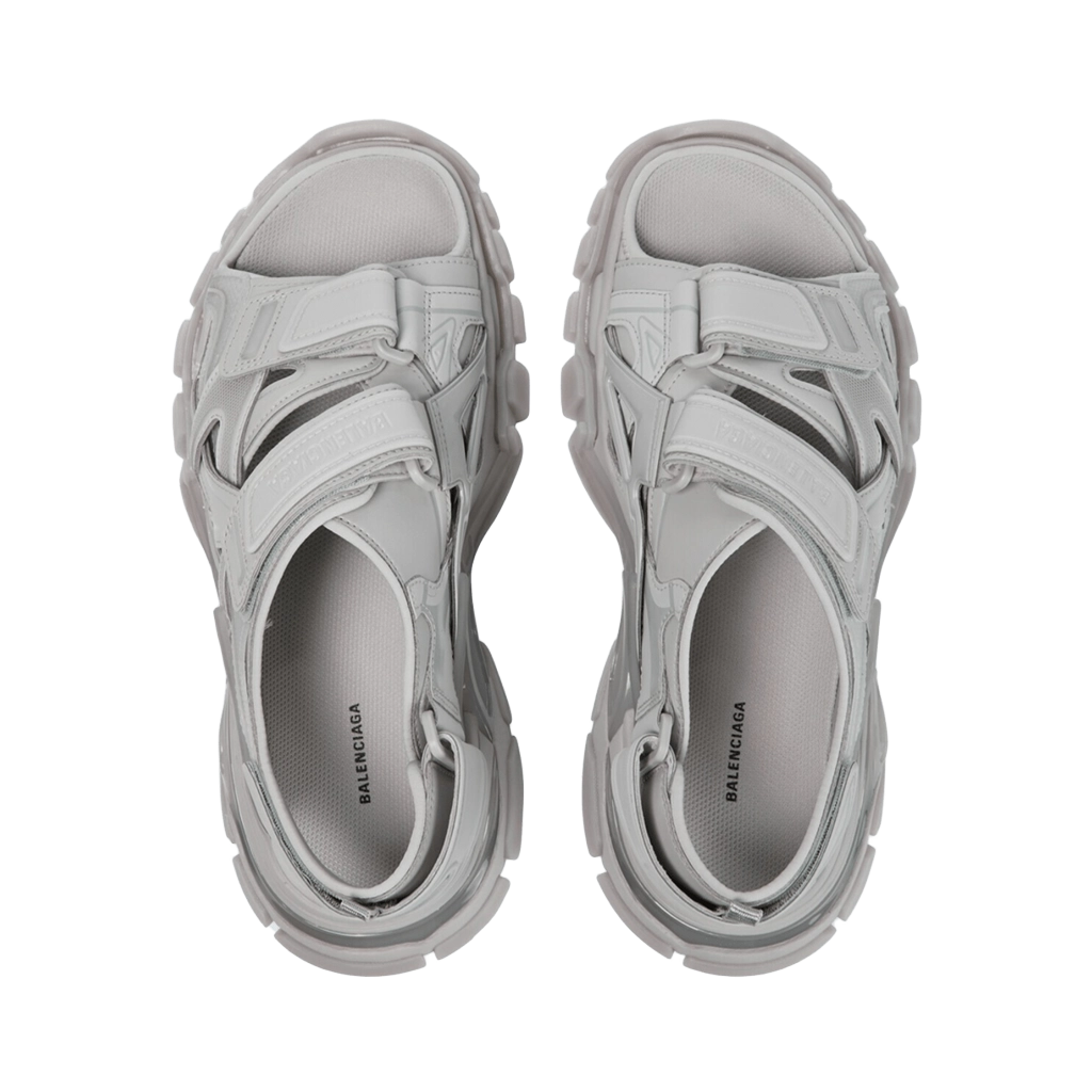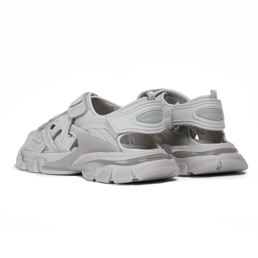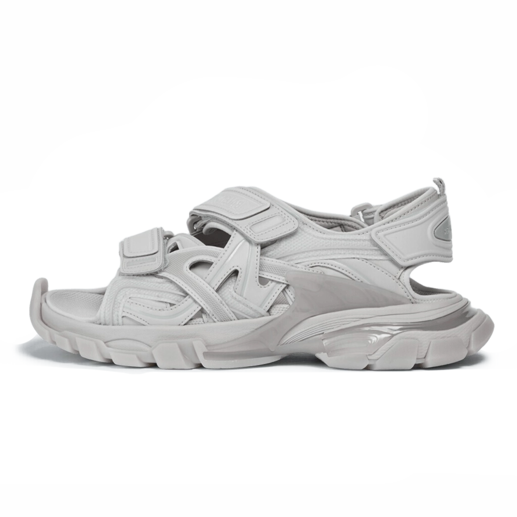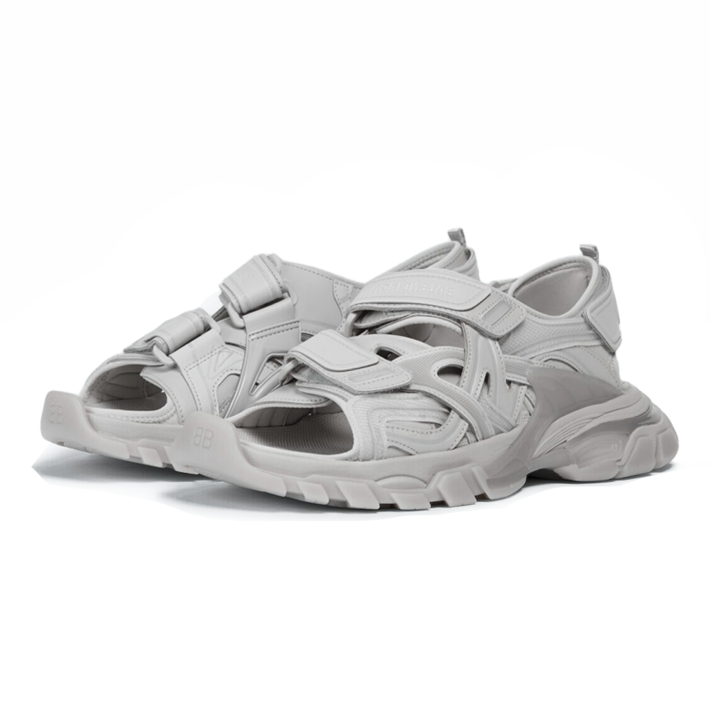 Balenciaga Track Clear Sole Strapped Sandals Grey משלבות סגנון אורבני עם נוחות מרבית ועיצוב מודגש. עשויות מבדים טכניים עמידים ורצועות מתכווננות, לסנדלים אלו התאמה בטוחה ולבישה לאורך זמן. צבע אפור מוסיף מגע מודרני ורב-שימושי, מושלם ללוקי קיץ יומיומיים, מראה רחוב או סטייל אורבני יומיומי.
