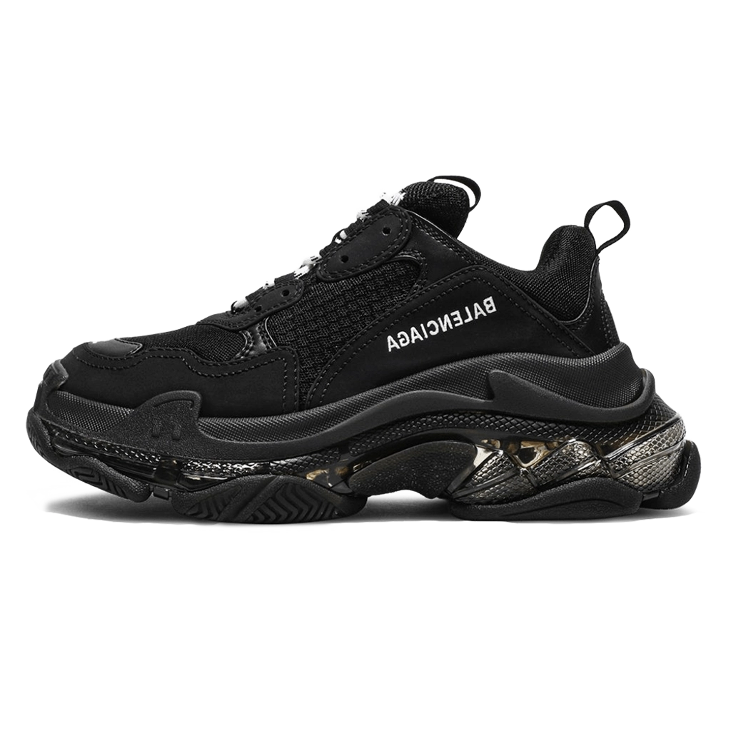 Balenciaga Triple S Clear Sole Black משלב עיצוב עבה אייקוני עם סוליה שקופה. אלגנטי, נועז ומושלם לאופנת רחוב מודרנית.