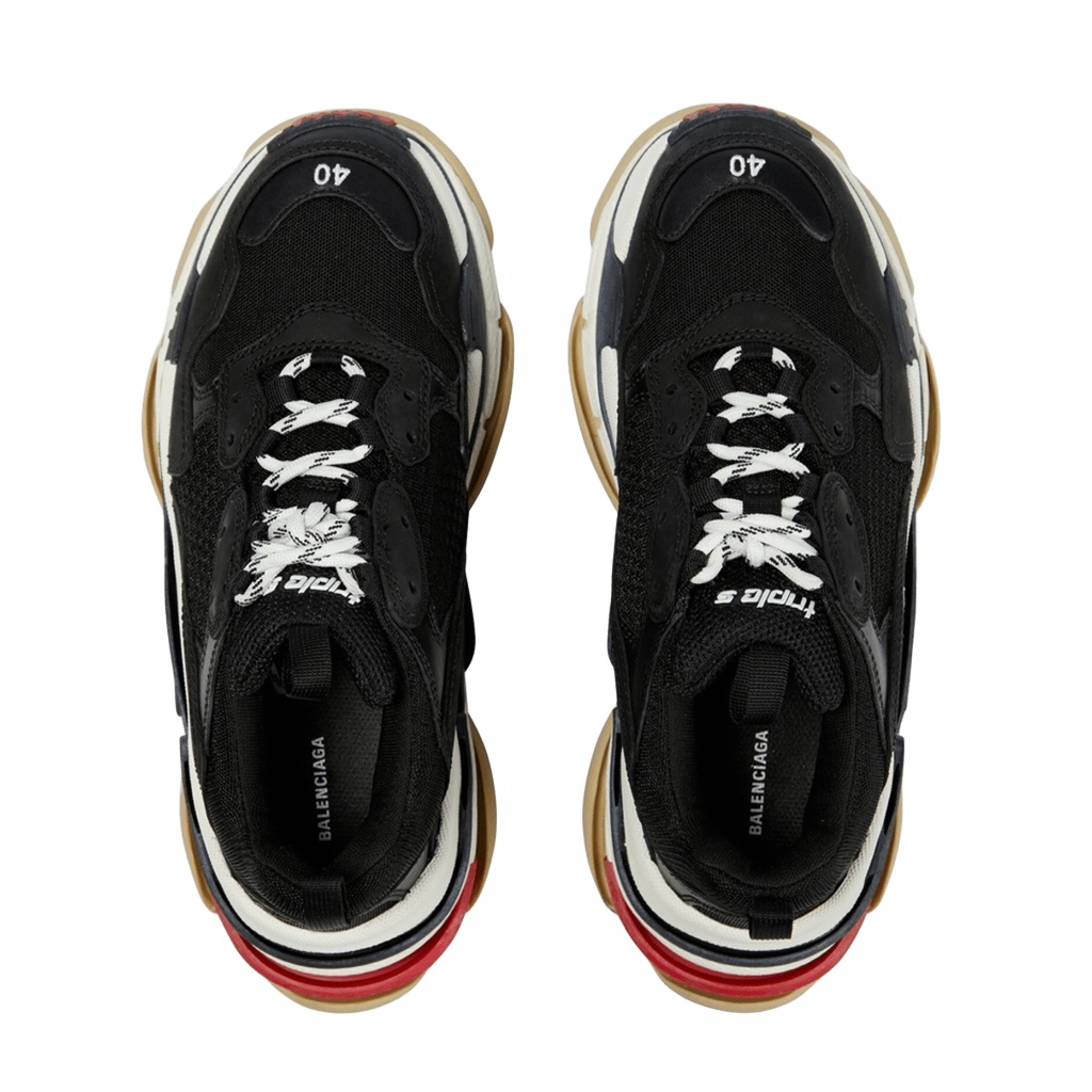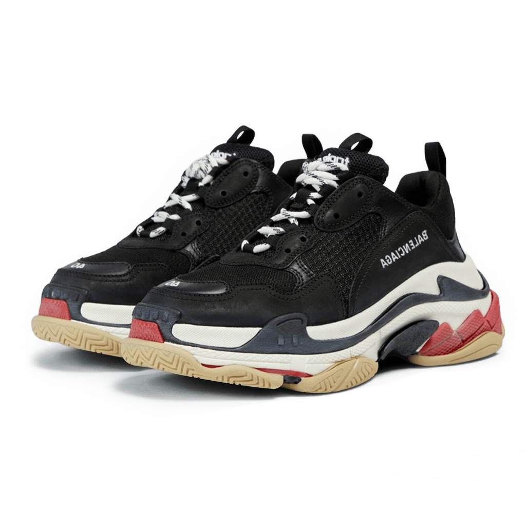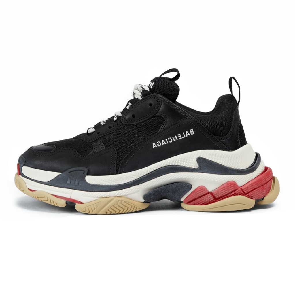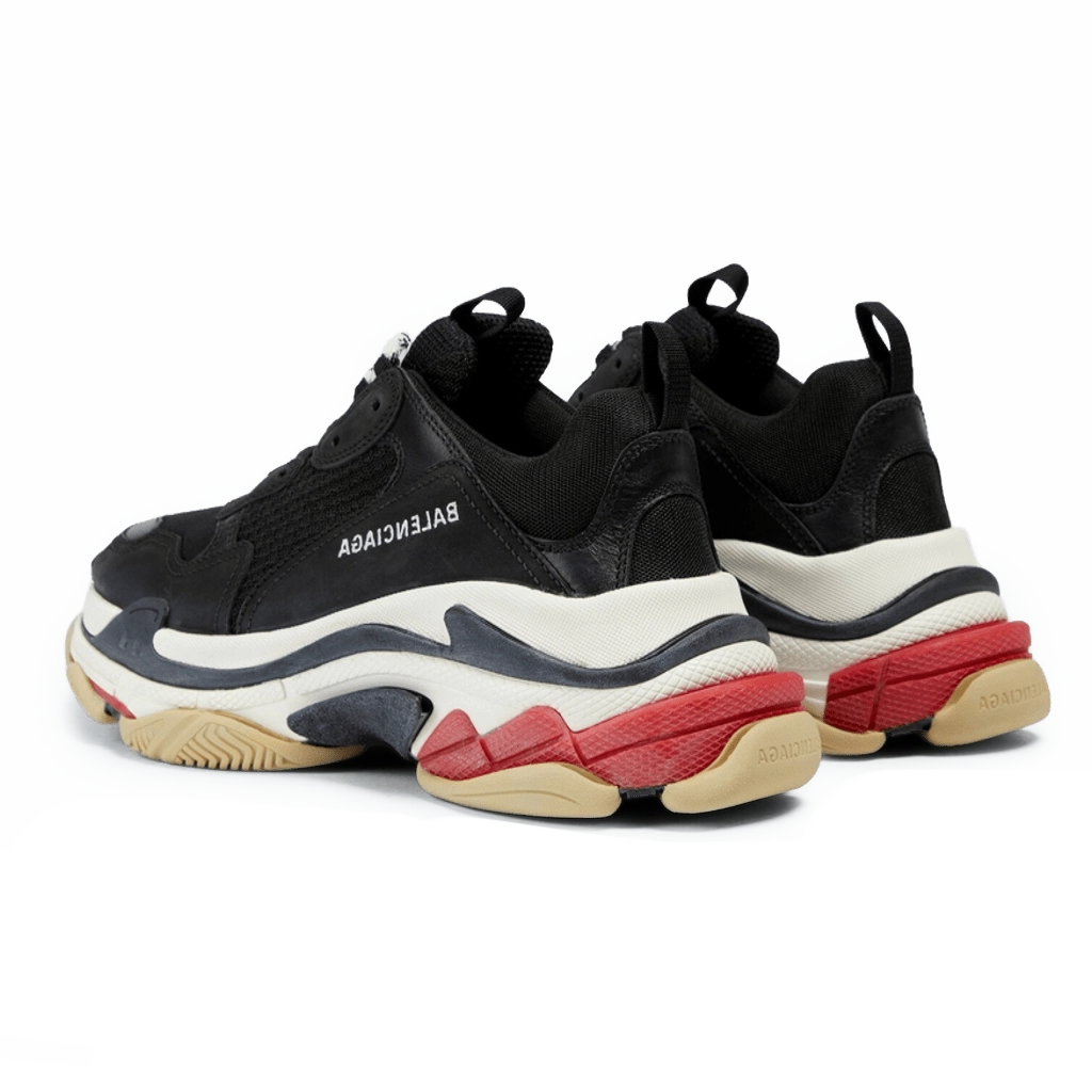 Balenciaga Triple S Trainer Black Red מציג את עיצוב הסניקרס האייקוני והאוברסייז שהגדיר מחדש את עולם אופנת הרחוב. הנעל עשויה משכבות חומרים איכותיים לעמידות ועומק, עם סוליה עבה וצבעים בולטים בשחור ואדום ליצירת לוק עוצמתי. שילוב של נוחות עם עיצוב יוקרתי ומודרני שהפך לסמל בתרבות הסניקרס העכשווית.