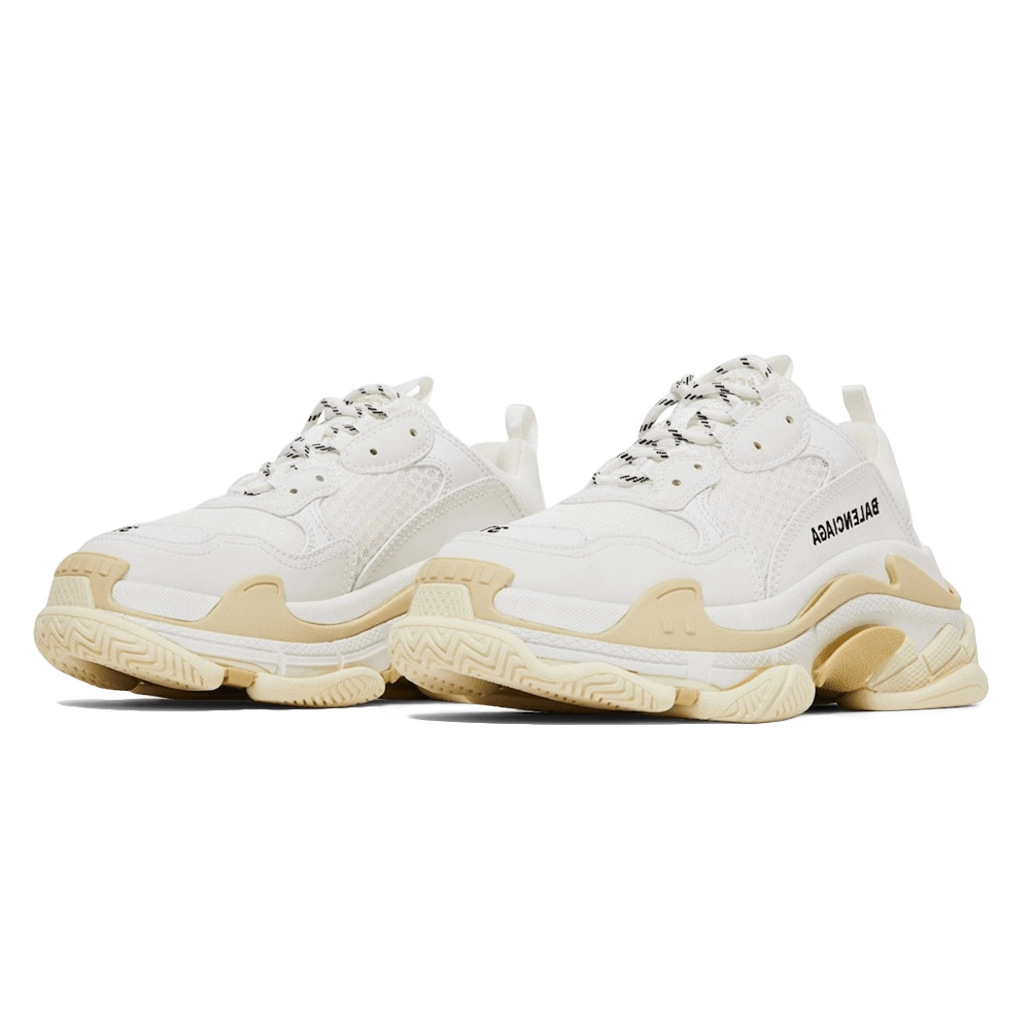Balenciaga Triple S White משלב עיצוב אוברסייז עם גימור לבן נקי. סניקרס נועזים המשלבים סטייל אופנתי ונוחות.