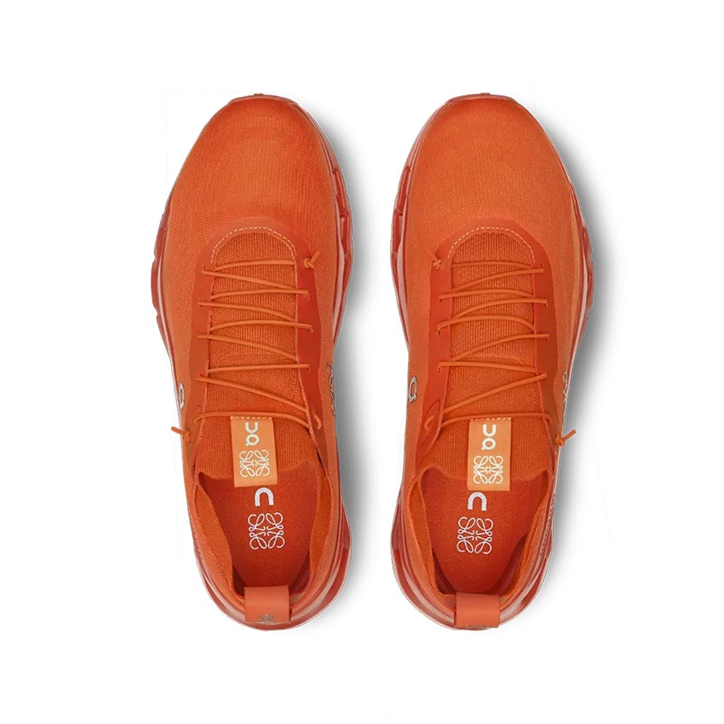 נעל On Running Cloudtilt LOEWE בצבע Orange מציגה שילוב מרשים של עבודת יד יוקרתית עם נוחות ביצועים גבוהה, תוך שמירה על קווים נקיים וגוון עוצמתי שמעלה את חוויית התנועה היומיומית. החלק העליון מרשת מהונדסת מספק תמיכה מאווררת, בעוד ריפוד CloudTec Phase מעניק נחיתה רכה ותנועה זורמת. בגוון כתום חי, הדגם מספק מראה מודרני שמשלב בין סטייל אורבני לדיוק טכנולוגי.