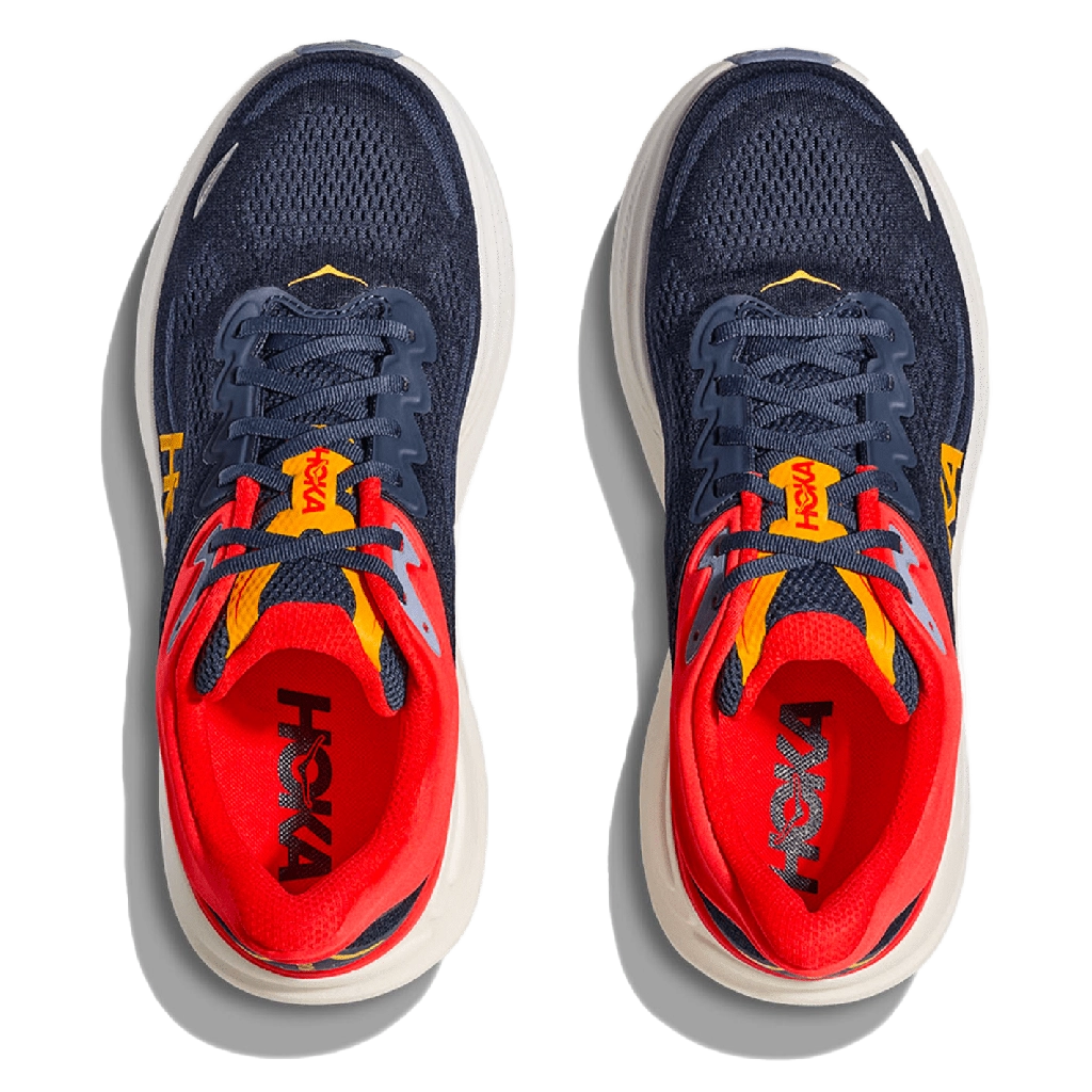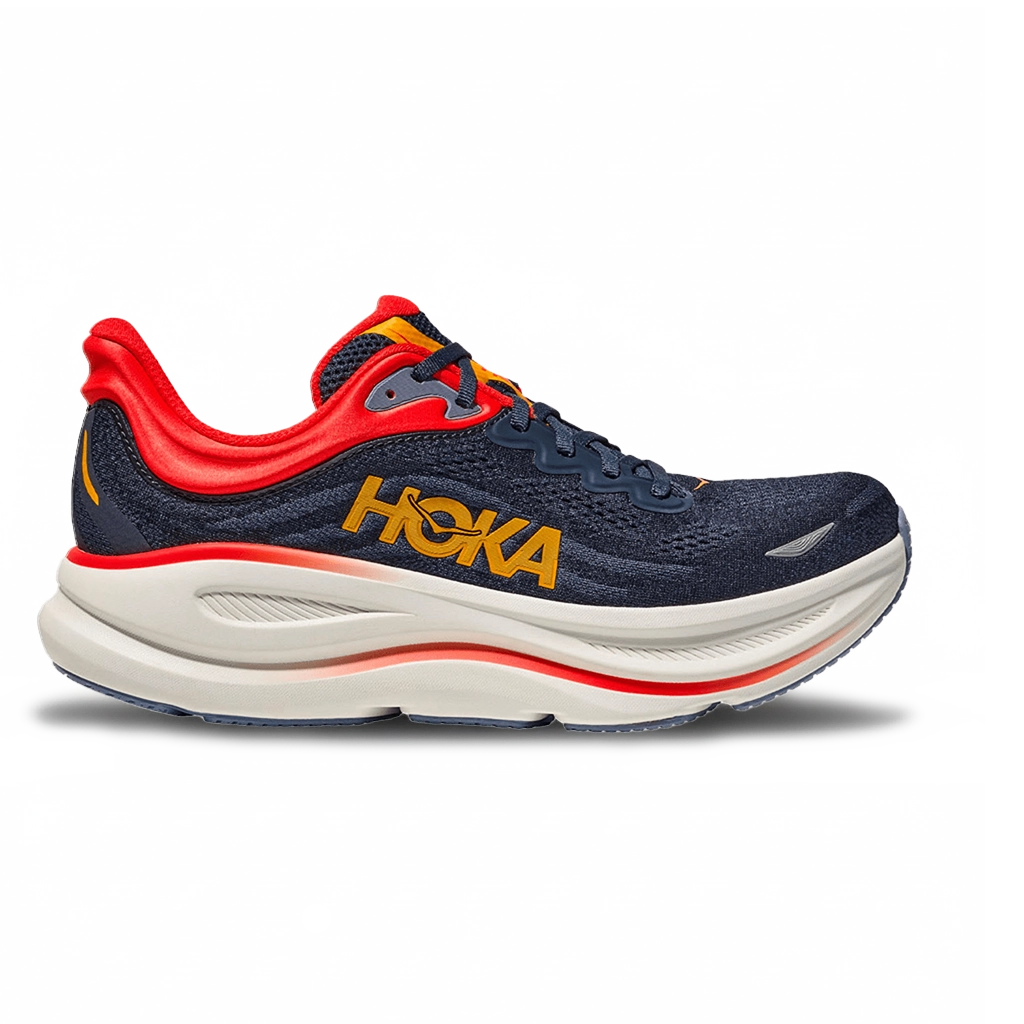 נעלי HOKA Bondi 9 בצבע Varsity Navy Nautical Blue משלבות בין ביצועים מתקדמים לעיצוב אלגנטי בהשראת גווני הים. הנעל מצוידת בסוליית EVA באורך מלא המספקת ריפוד עשיר ותגובה רכה, לצד טכנולוגיית Meta-Rocker המבטיחה תנועה חלקה וטבעית בכל צעד. החלק העליון עשוי רשת מהונדסת לנשימה ותמיכה מרבית, והעקב המעוצב מוסיף יציבות מושלמת. הצבעים הכחולים העמוקים מעניקים לנעל מראה מודרני ודינמי עם נוחות שאין שנייה לה.