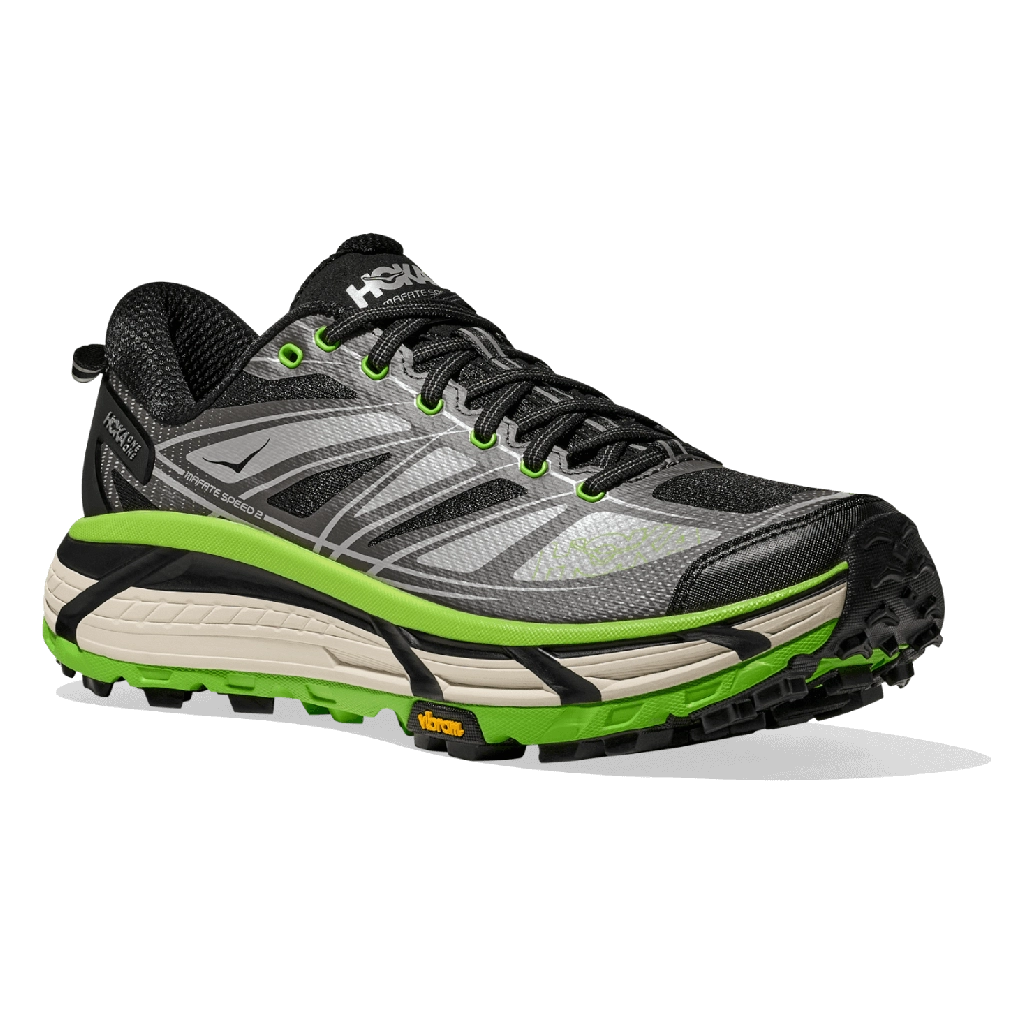 נעלי HOKA Mafate Speed 2 Black Electric Green תוכננו לריצה בשטח ברמה גבוהה, עם עמידות ונוחות יוצאות דופן. העליונה מרשת ועור סינתטי מספקת תמיכה ונשימה לאורך זמן. סוליית Vibram® Megagrip מבטיחה אחיזה אמינה בכל סוגי השטח, בעוד שסוליית EVA של HOKA מעניקה ריפוד והגנה מפני זעזועים לכל היום. צבע Black Electric Green מעניק מראה בולט ואנרגטי, שמתאים הן להרפתקאות בשטח והן לשימוש יומיומי בעיר.