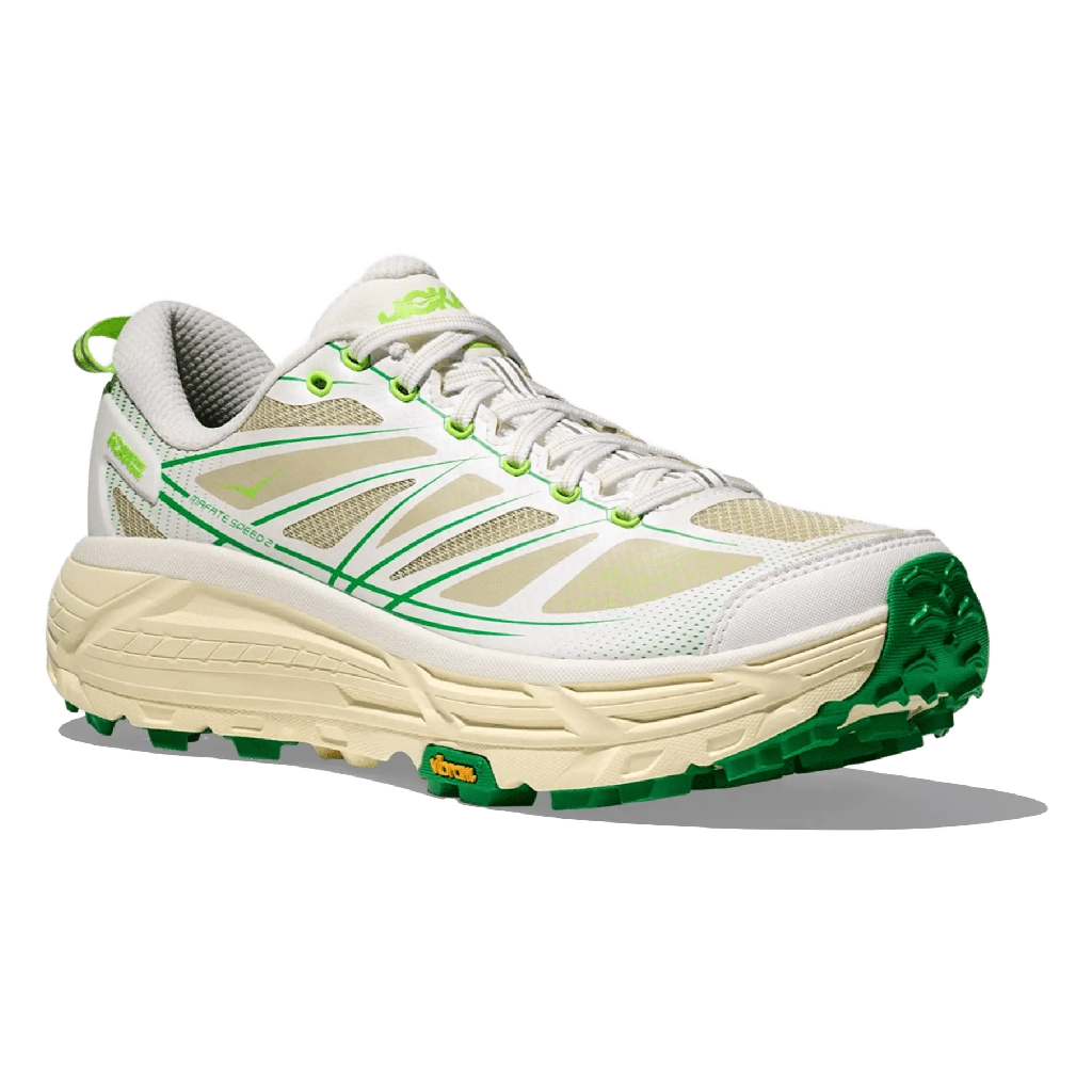 נעלי HOKA Mafate Speed 2 White Fresh Cut Grass משלבות ביצועים מוכנים לשטח עם נוחות ועמידות לאורך כל היום. הדגם מתאים למגוון משטחים עם עליונה מרשת ועור סינתטי לנשימה, תמיכה ועמידות לאורך זמן. סוליית Vibram® Megagrip מספקת אחיזה מצוינת בכל סוגי המשטחים, בעוד שסוליית EVA של HOKA מעניקה ריפוד והגנה מפני זעזועים לאורך כל היום. צבע White Fresh Cut Grass מוסיף מראה רענן ונקי, שמתאים הן לטרקים בשטח והן לשימוש יומיומי בעיר.