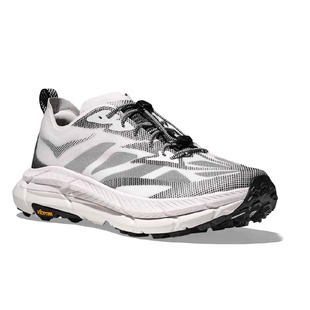 נעלי HOKA Mafate Speed 4 Lite “Stealth Tech Pack – White Black” מציעות ביצועי שטח מתקדמים בעיצוב מודרני בשחור-לבן. הנעליים תוכננו לנוחות וגמישות, עם עליונית רשת קלת משקל, סוליית ביניים CMEVA מתקדמת לריכוך ותמיכה, וסוליית Vibram® Megagrip לאחיזה מצוינת בכל סוגי השטח. הצבעוניות הלבנה-שחורה מעניקה מראה טכנולוגי ועכשווי תוך שמירה על יציבות וביצועים לאורך מרחקים ארוכים.