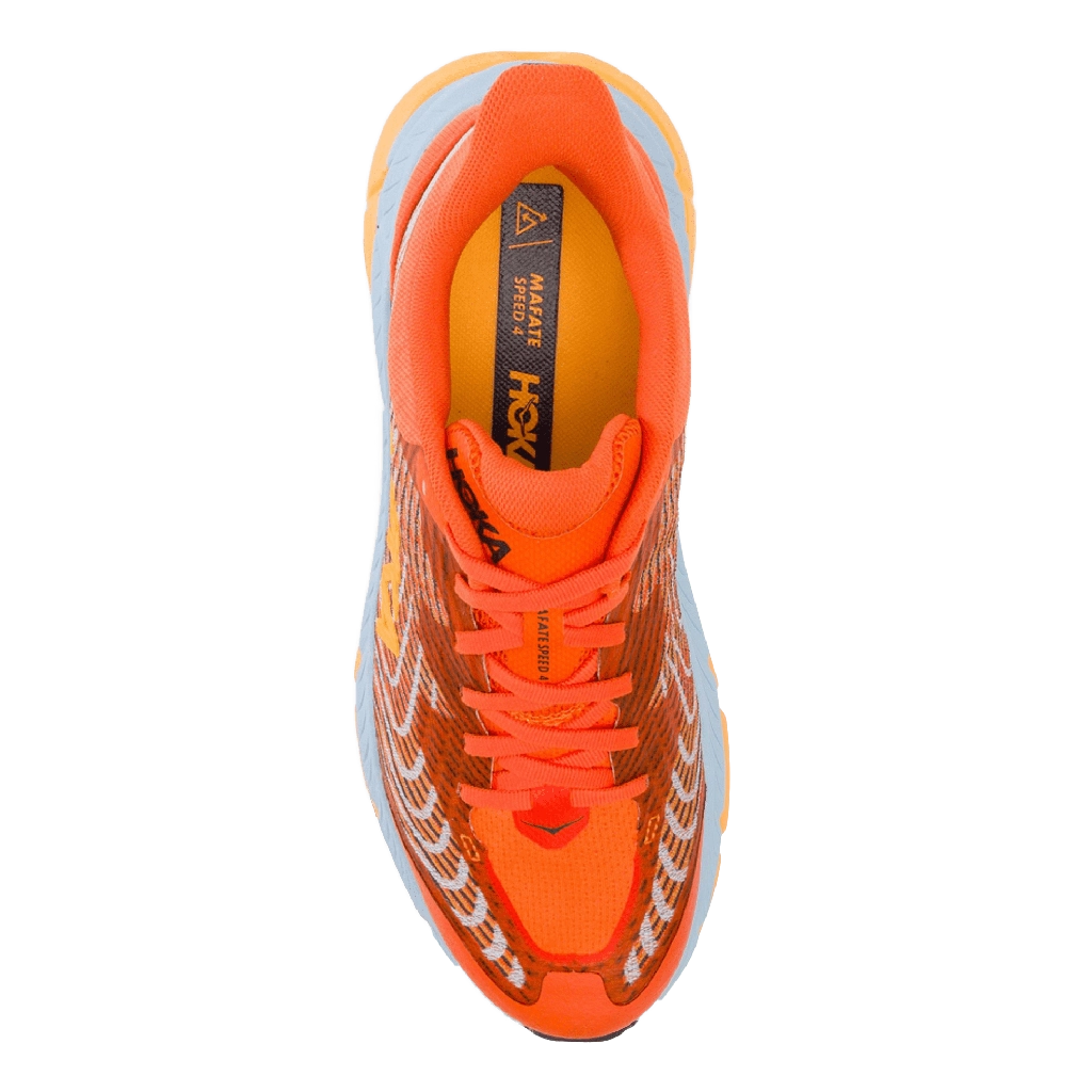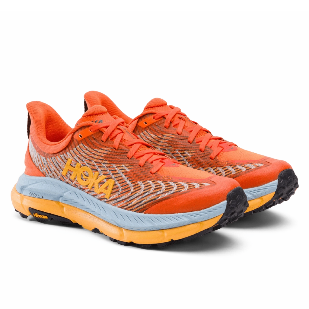 נעלי HOKA Mafate Speed 4 “Puffin’s Bill Orange” משלבות ביצועי שטח מוכחים עם סגנון נועז ובולט. הנעליים כוללות עליונית רשת לנשימה, סוליית ביניים CMEVA לריכוך ותמיכה, וסוליית Vibram® Megagrip לאחיזה ויציבות במסלולי שטח ארוכים. צבע Puffin’s Bill Orange מעניק מראה דינמי ואנרגטי לאוסף נעלי השטח שלך.