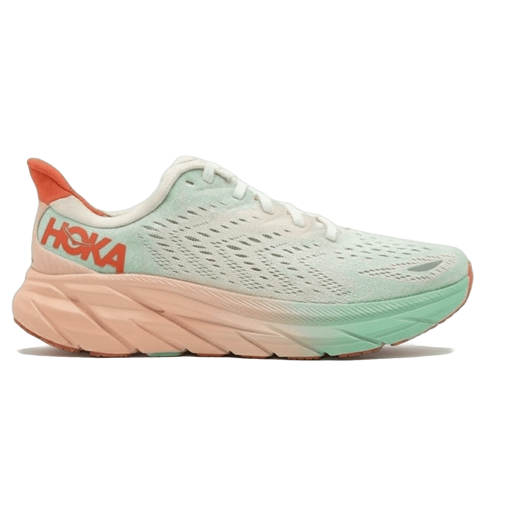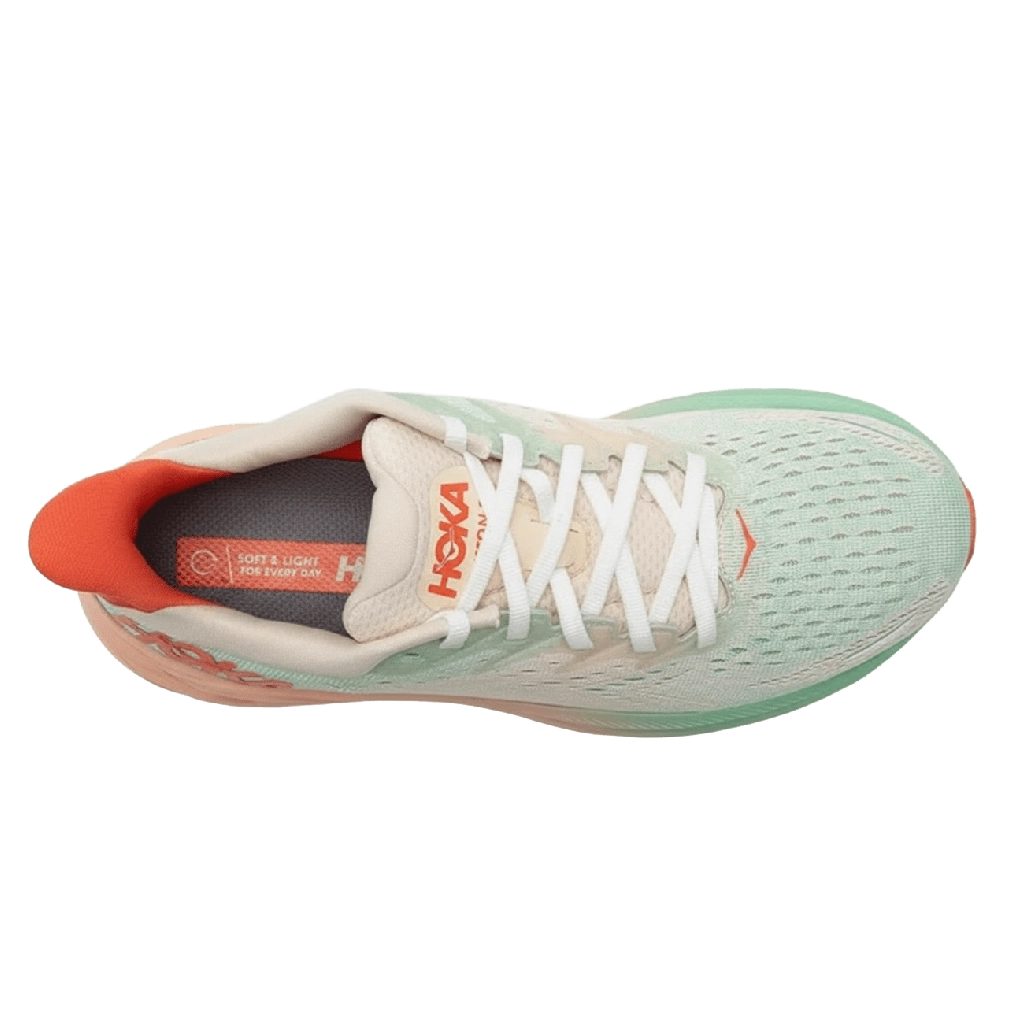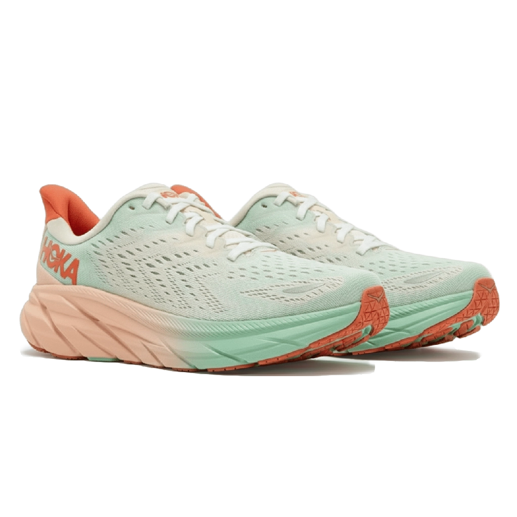 נעלי Hoka One One Clifton 8 בצבע Orange Mint Green משלבות עיצוב מלא חיים עם ביצועים יוצאי דופן. הדגם מציע תחושת רכות ותגובה חלקה בכל צעד, הודות לבולם הזעזועים החדשני של Hoka. החלק העליון מאוורר וקל, והעקב המעוגל מאפשר מעבר טבעי וזורם מהעקב ועד הבוהן. שילוב הצבעים הייחודי של כתום וירוק מנטה מוסיף טאץ’ נועז ועכשווי לכל הופעה.