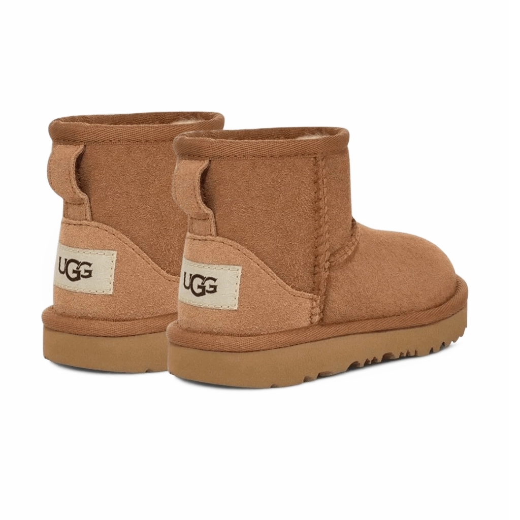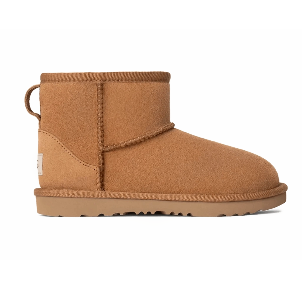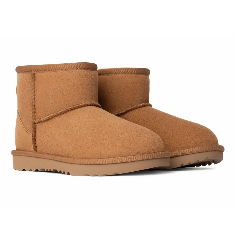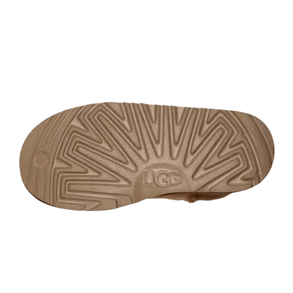 מגף Kids’ Mini Classic II Boot בצבע Chestnut מביא את הסגנון האייקוני של UGG בגוון חום חמים ועל-זמני. עשוי מזמש איכותי עם ריפוד צמר כבשים מפנק, המגף מעניק תחושת חמימות ונוחות לאורך כל היום. סוליה קלה וגמישה מספקת רכות ותמיכה, בעוד שהגימור הדוחה מים מבטיח עמידות לשימוש יומיומי.