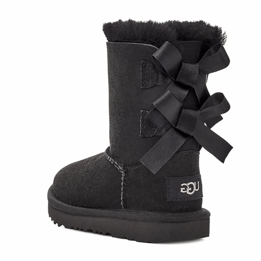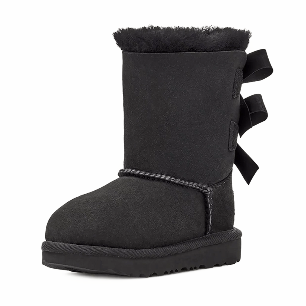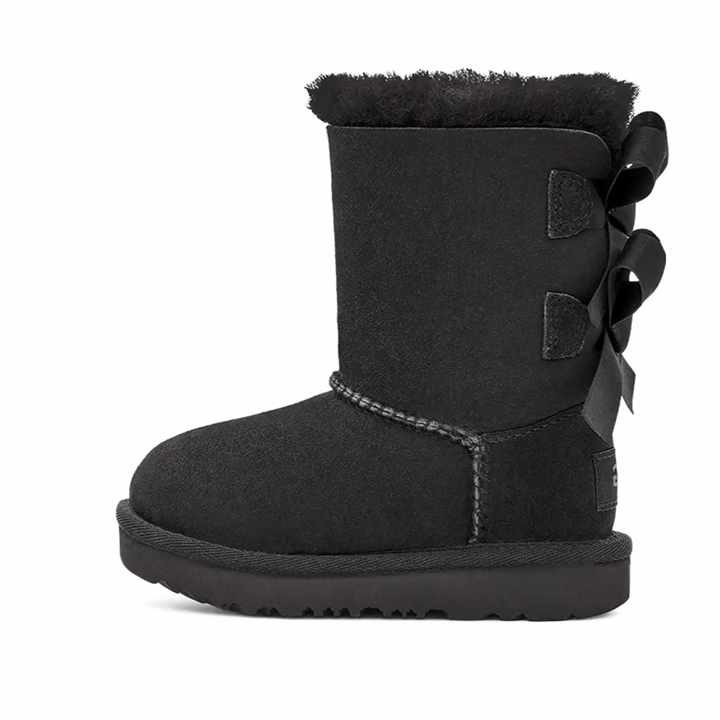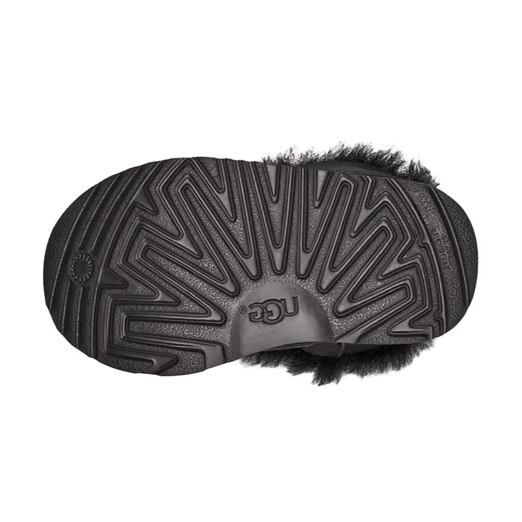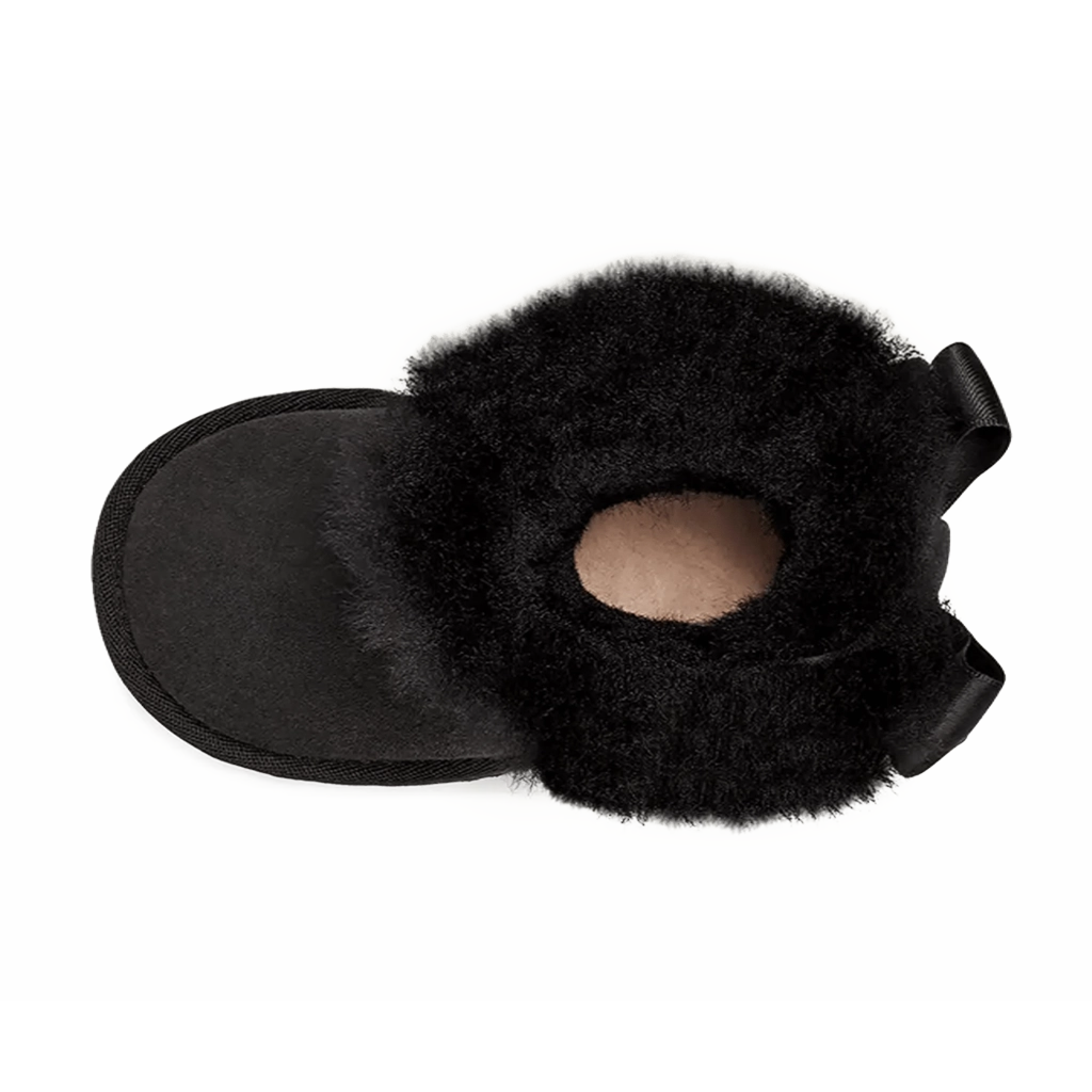 מגף Kids’ Mini Bailey Bow II Boot שחור מביא חמימות ונוחות עם נגיעה שובבה. עשוי מזמש וצמר כבשים רך, עם סרטי סאטן בגב להוספת ייחוד. הסוליה הקלה והעמידה מספקת אחיזה מצוינת, והריפוד הפנימי שומר על נוחות לאורך כל היום בסגנון קלאסי של UGG.