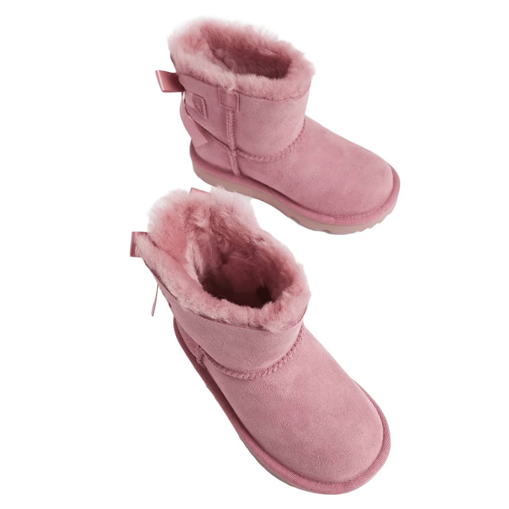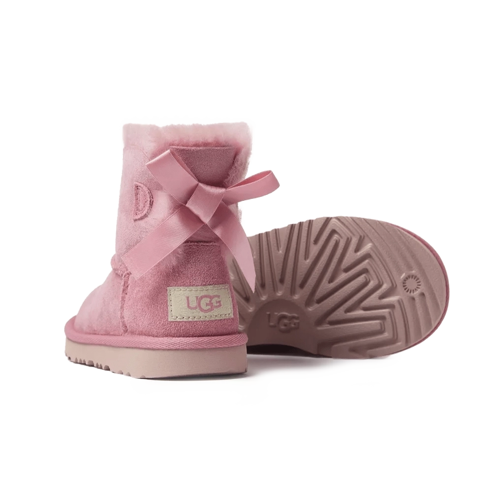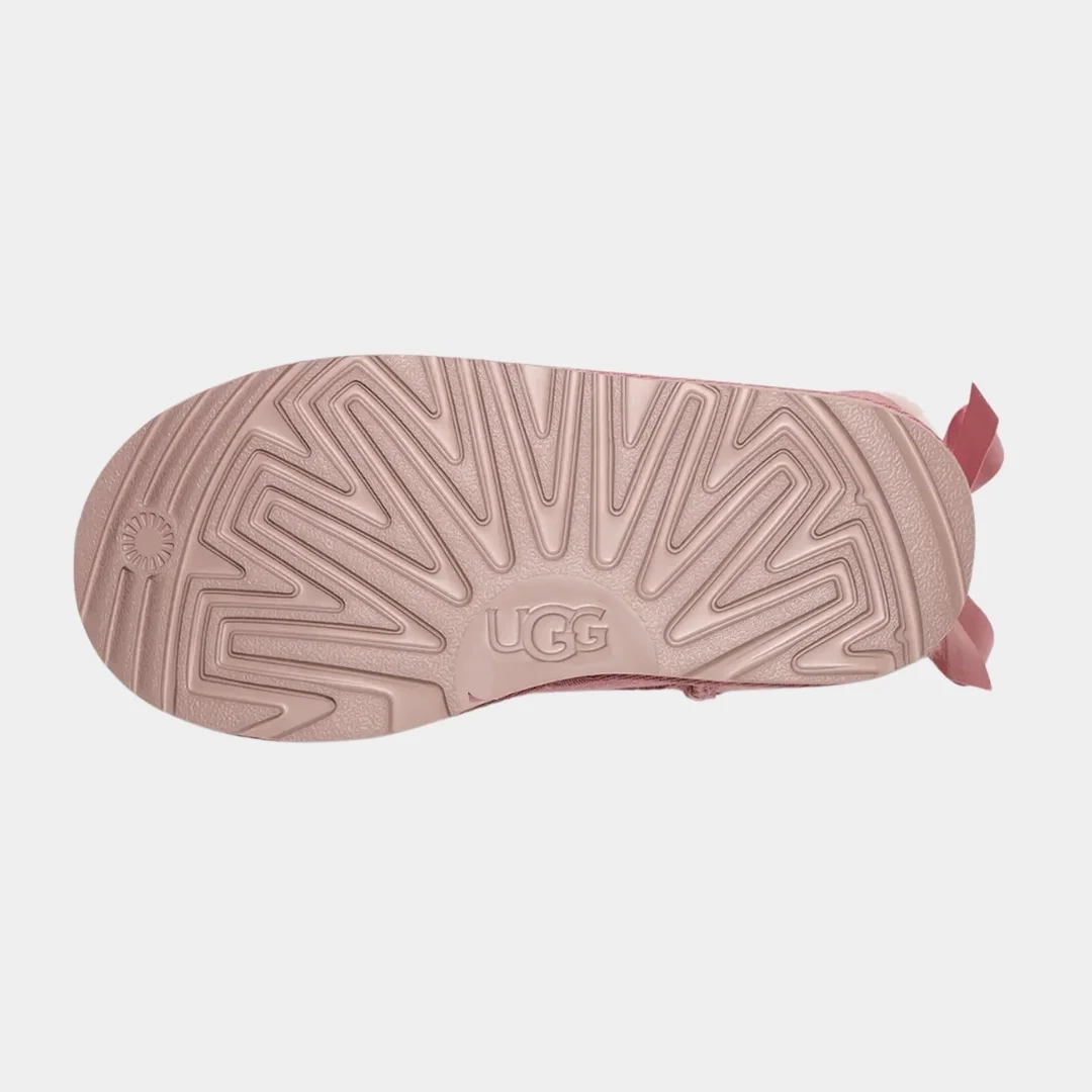מגף Kids’ Mini Bailey Bow II Boot בצבע ורוד הוא גרסה מקסימה לקלאסיקה אהובה, עם שילוב של זמש רך וצמר הכבשים המוכר של UGG לנוחות וחמימות. סרטי סאטן עדינים בגב מוסיפים מראה שובב ומתוק, בעוד המבנה הקליל והעמיד הופך אותם למושלמים ליום יום בבית ומחוץ לו.