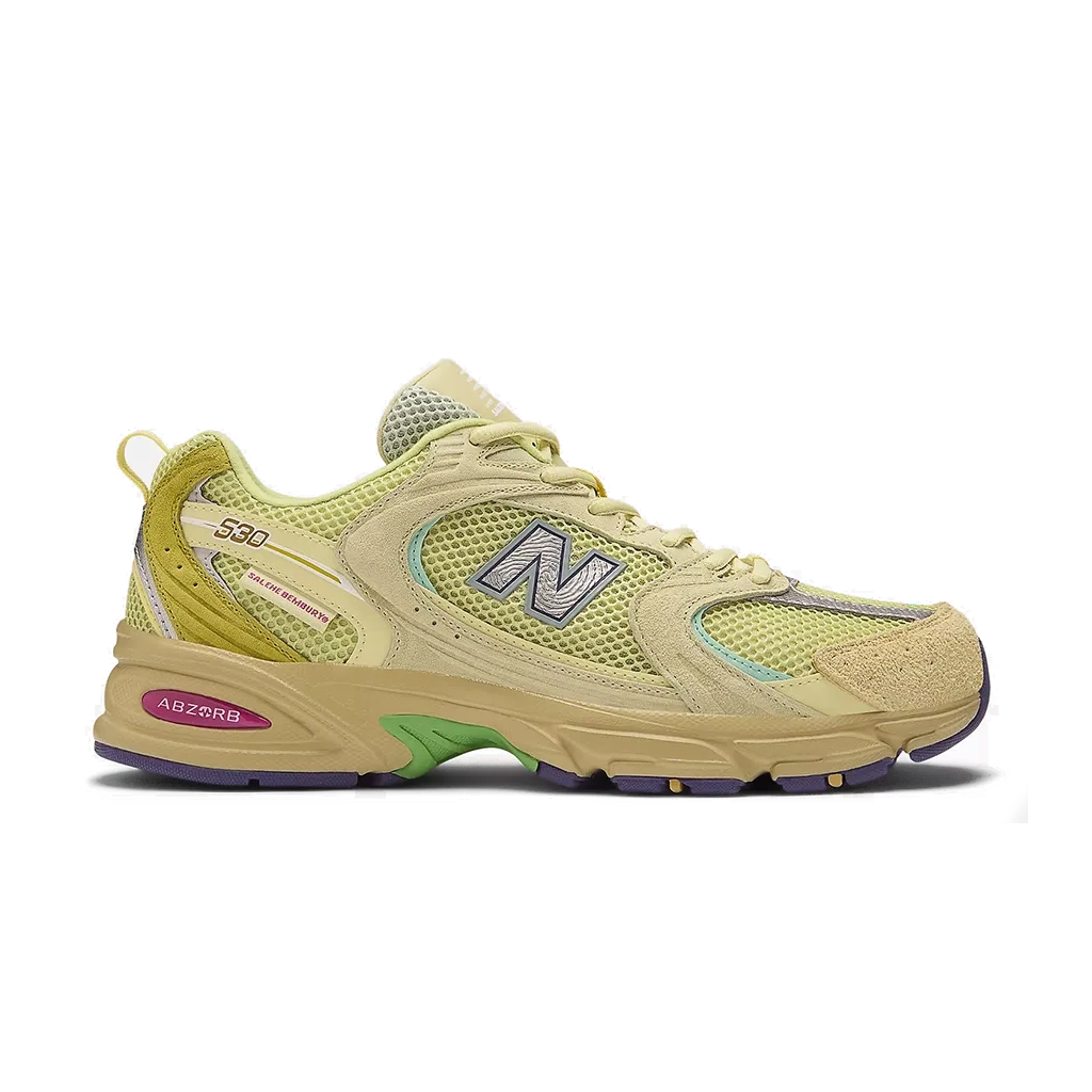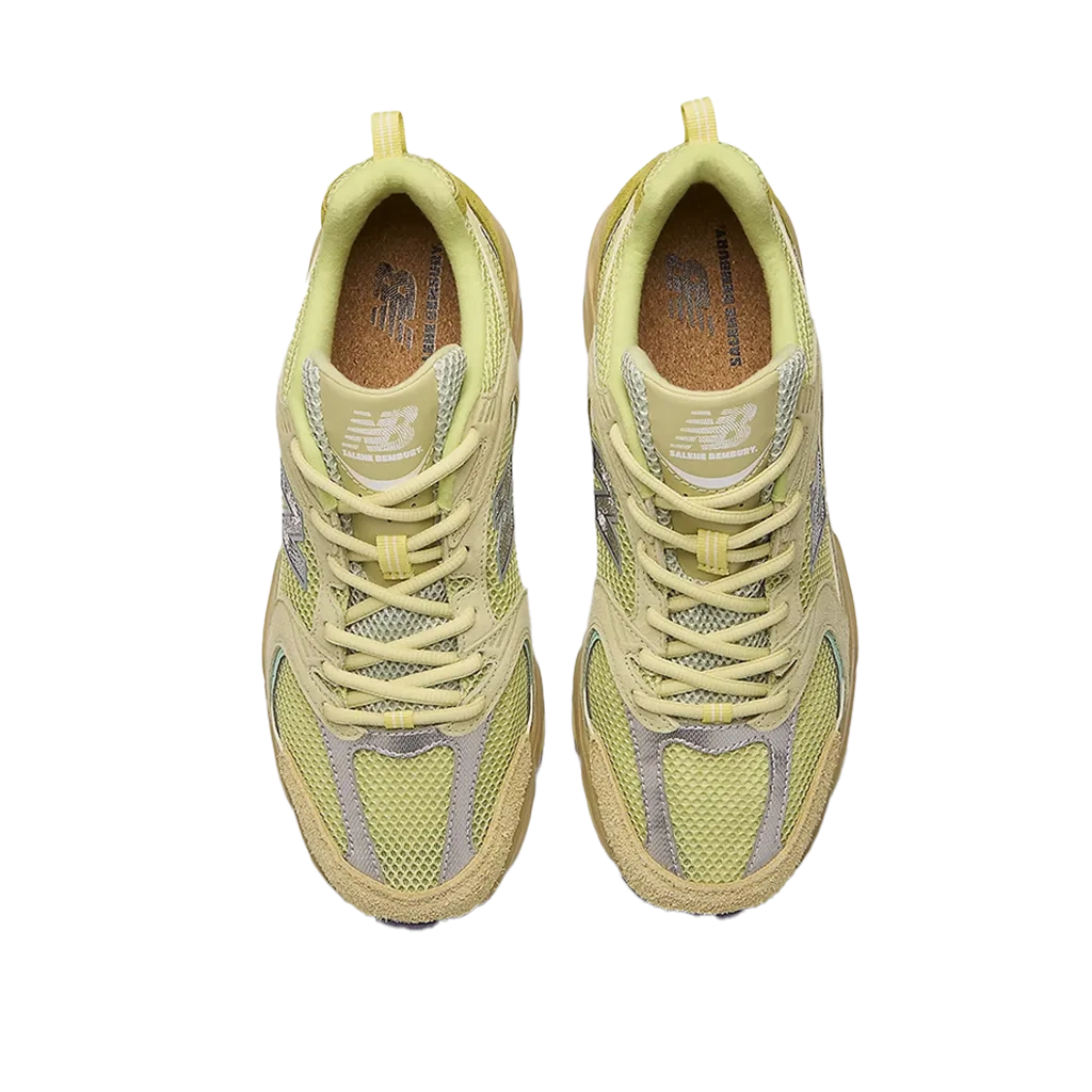 דגם Salehe Bembury x 530 בצבע “Prosperity Be The Prize” מציע פרשנות נועזת ודינמית לצללית הקלאסית של סדרת 530. עם גווני ניאון ירוק בוהקים, חומרים בשכבות וסוליה מעוצבת, הנעל משלבת סגנון רחוב עם עיצוב חדשני. מבנה קל משקל וריפוד נוח מספקים נוחות לאורך כל היום, תוך יצירת מראה בולט וייחודי.